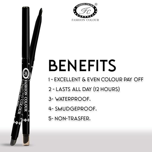 ?ONE STROKE APPLICATION?:: Fashion Colour Intense Black Kajal glides super easily. In one swipe, change the canvas of your eyes instantly. ?BUILT IN SMUDGER?:: Features an in-built smudger for seamless blending. ?12-HOUR LONGSTAY?::The Kajal stays intact for 12 hours so that your glamour quotient does not diminish. The Kajal's formula is super creamy and soft. ?SMUDGE PROOF?:: Ultra-smudgeable eyeliner allows you to create versatile, smoky eye looks " ?HIGHLY PIGMENTED?:: Highly pigmented eyeliner delivers vibrant strokes.