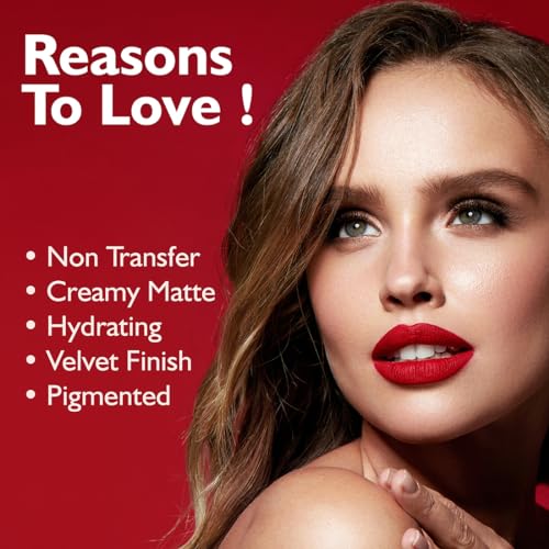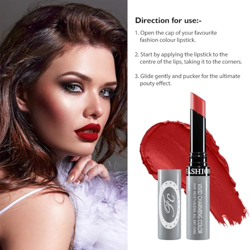 KISSPROOF: The kissproof lipstick from Fashion Colour is a pure matte lipstick that coats your lips with intense color. Get a stunning fuller-looking pout with just a single swipe of this lipstick. LONG LASTING: This long lasting luminous matte lipsticks stays upto 15 hrs. NON TRANSFARABLE: This lipstick is non transfer & water resistant formula keeps your lips smudge free throughout. HIGHLY PIGMENTED: This long lasting matte lipsticks has a rich color payoff and is extremely pigmented. VIVID CHARMING SHADES: It comes in a range of 64 charming shades that suit every look and every Indian skintone.