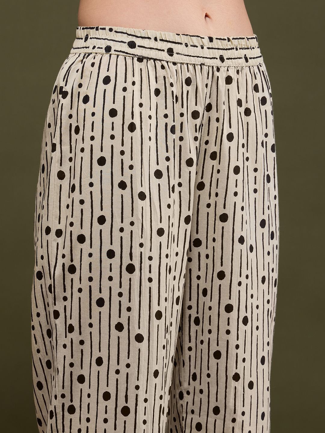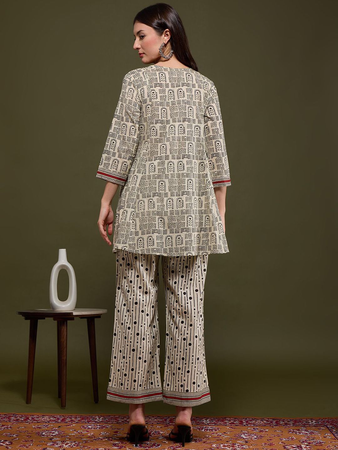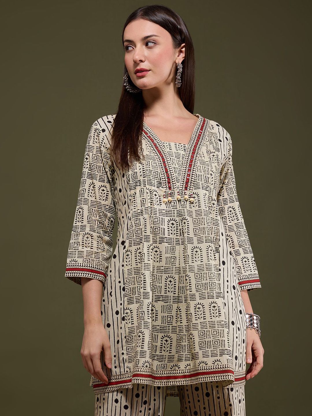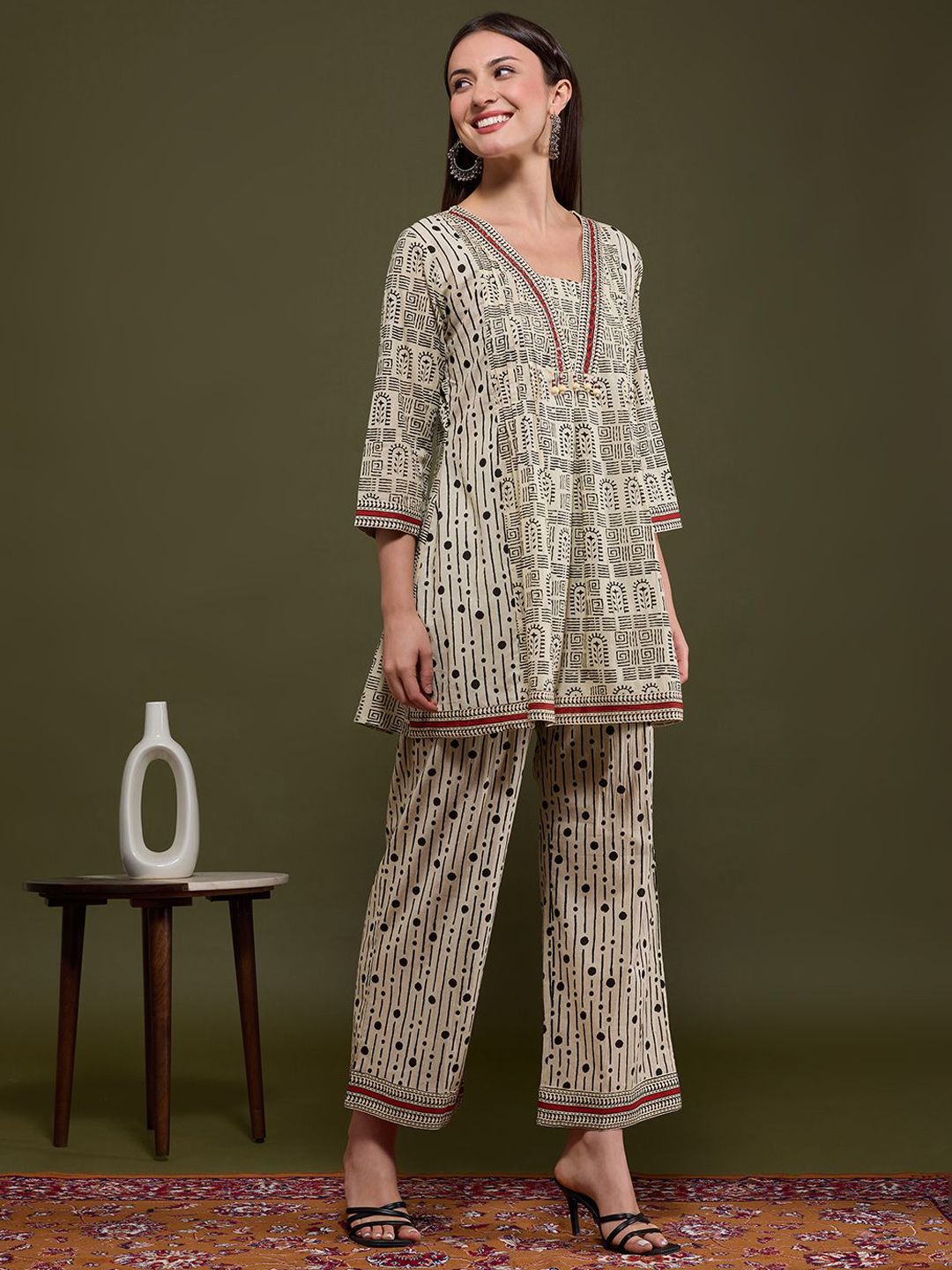FASHOR Ethnic Motifs Printed Panelled Mirror Work Pure Cotton Kurti With Palazzos