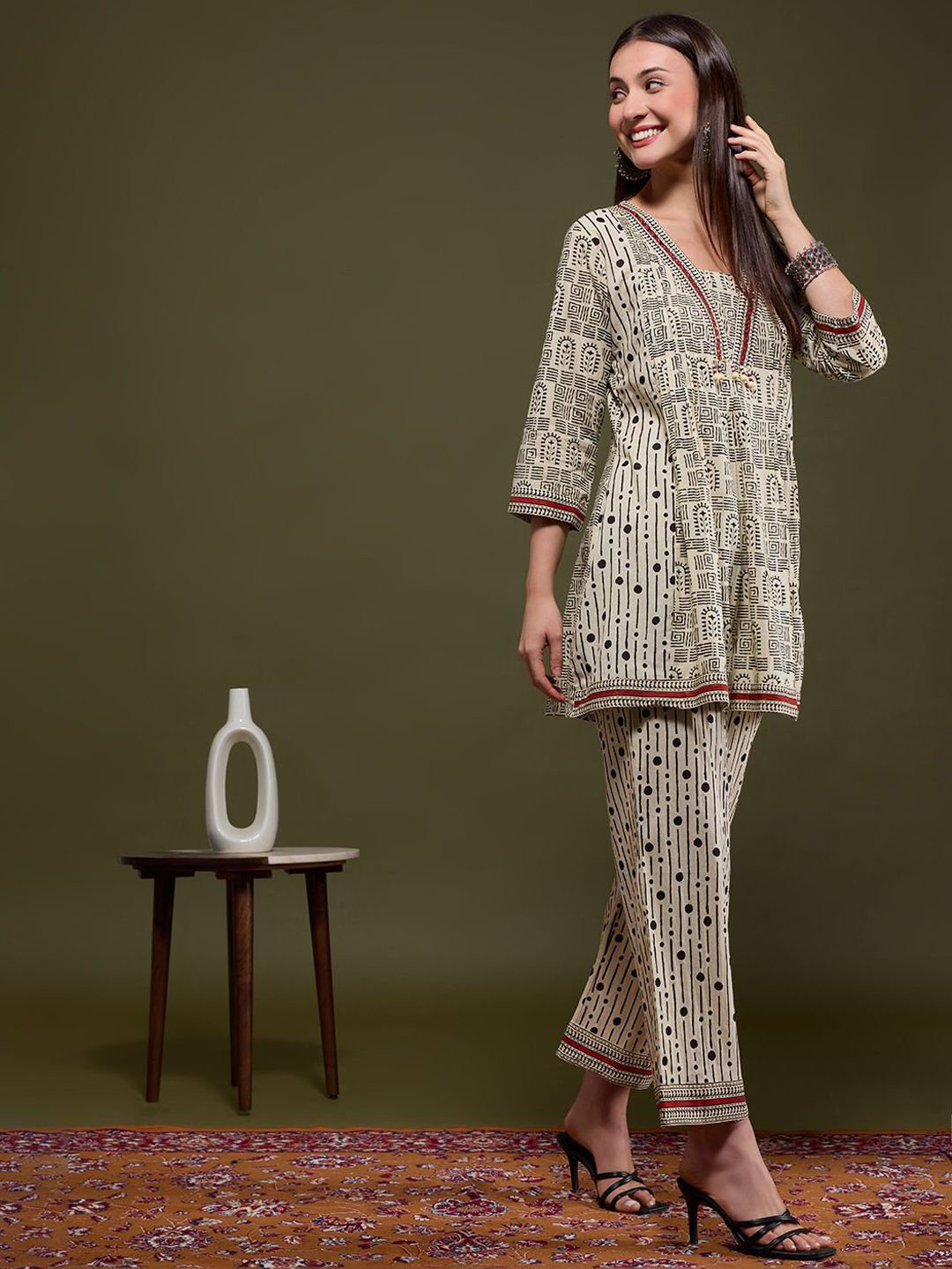 Buy this stylish FASHOR Ethnic Motifs Printed Panelled Mirror Work Pure Cotton Kurti With Palazzos at Marincart Nepal. This product offers great quality and value. Perfect for those looking for the latest trends in fashion. Get yours now at unbeatable prices.