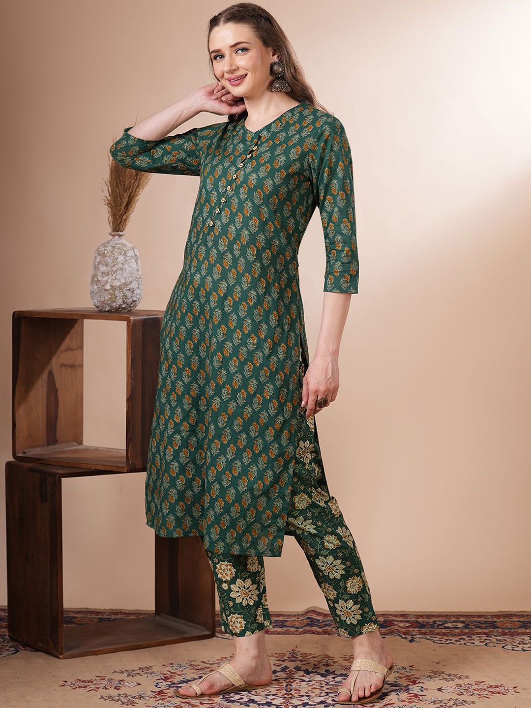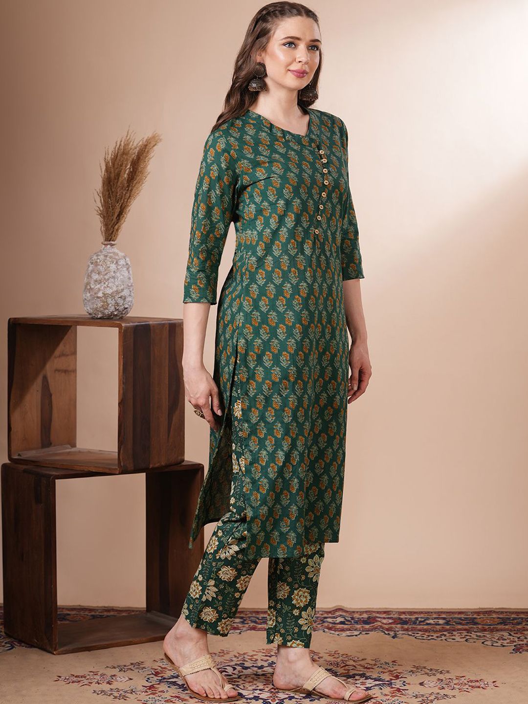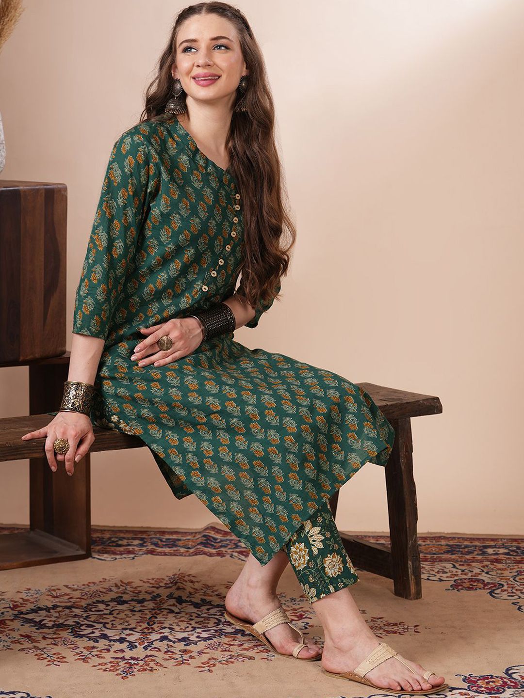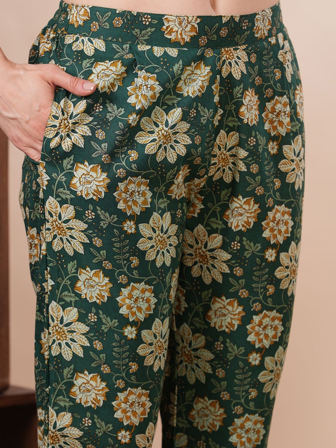 FASHOR Ethnic Motifs Printed Pure Cotton Kurta With Trousers