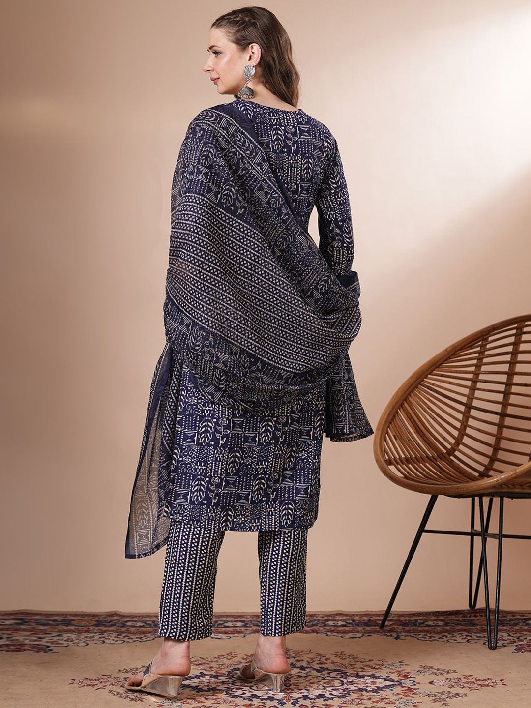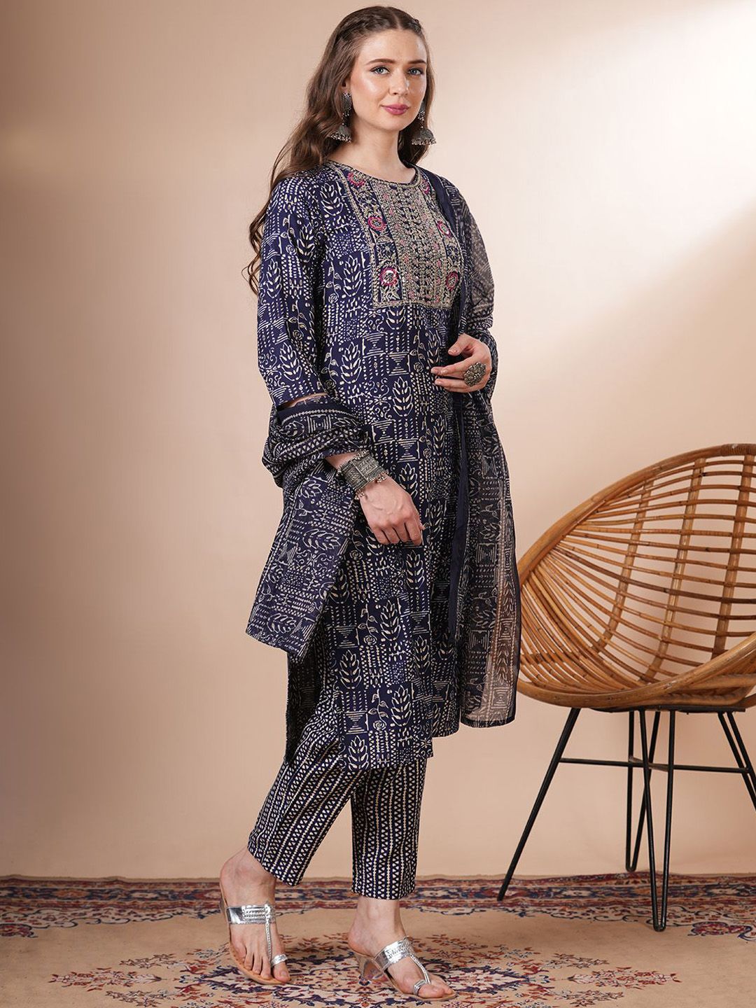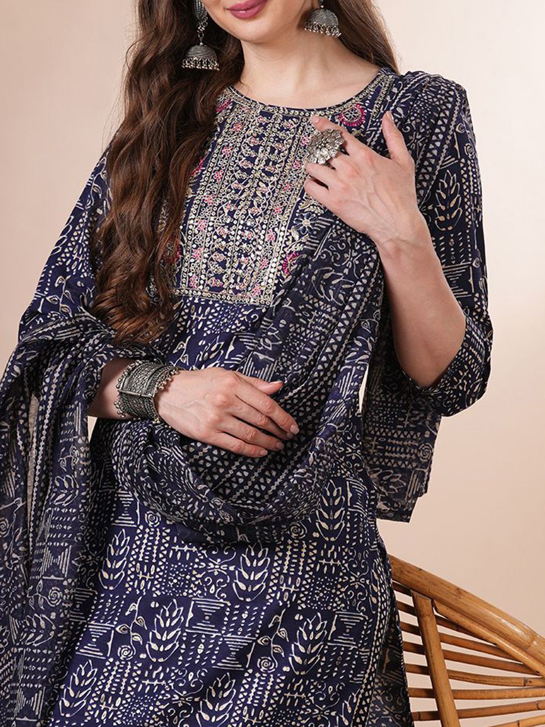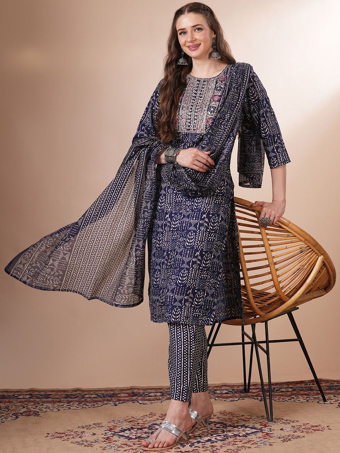 Buy this stylish FASHOR Ethnic Motifs Printed Sequinned Pure Cotton Straight Kurta With Trousers & Dupatta at Marincart Nepal. This product offers great quality and value. Perfect for those looking for the latest trends in fashion. Get yours now at unbeatable prices.