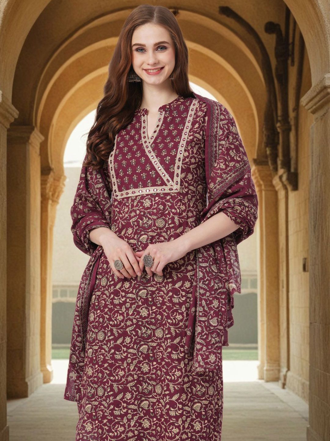 Buy this stylish FASHOR Floral Printed Mirror Work Pure Cotton Straight Kurta With Trousers & Dupatta at Marincart Nepal. This product offers great quality and value. Perfect for those looking for the latest trends in fashion. Get yours now at unbeatable prices.