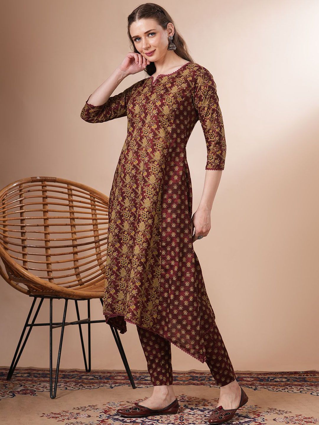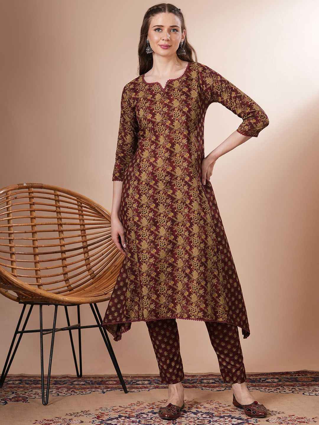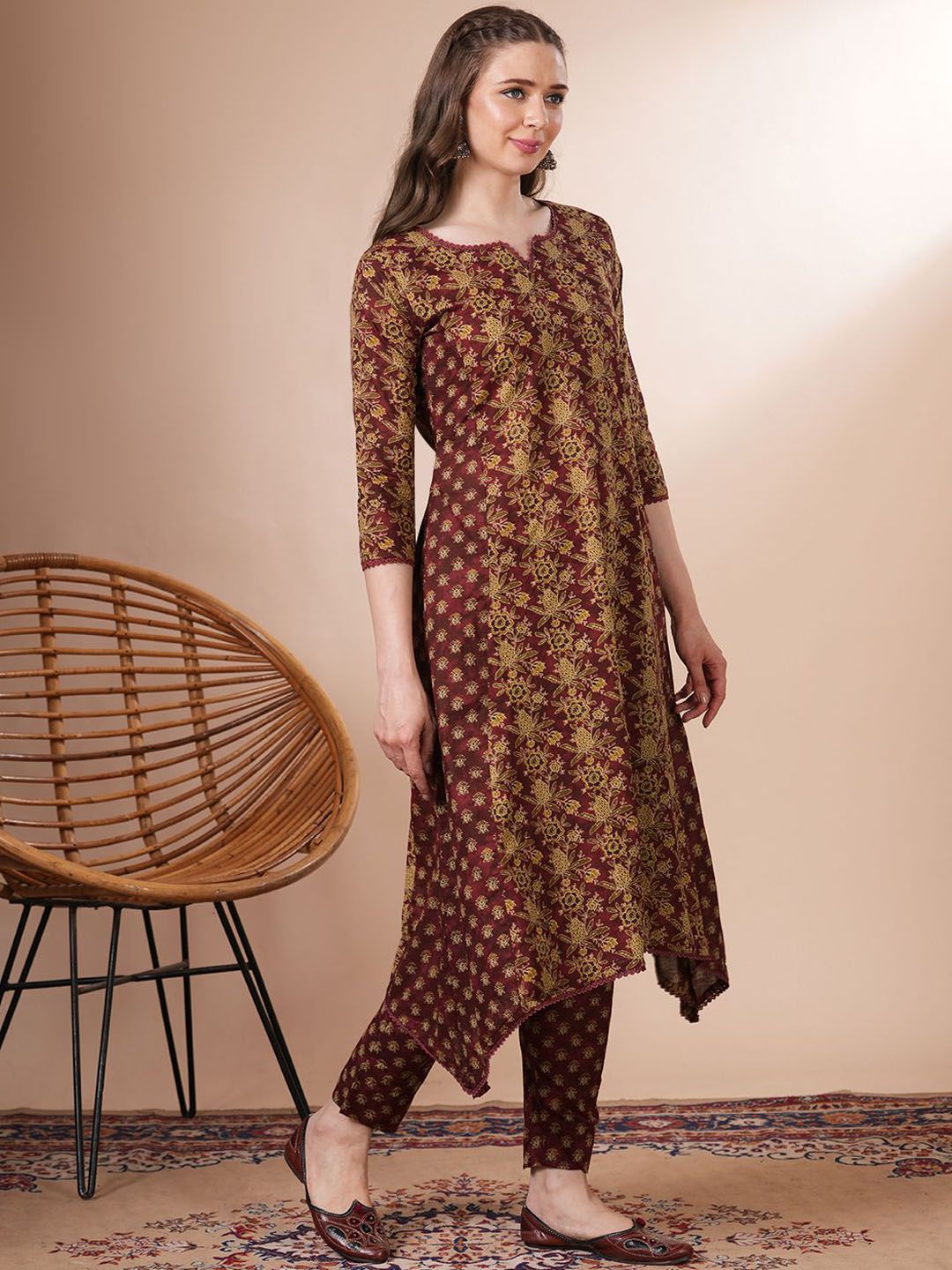 Buy this stylish FASHOR Floral Printed Notch Neck Thread Work Pure Cotton A-Line Kurta With Trousers at Marincart Nepal. This product offers great quality and value. Perfect for those looking for the latest trends in fashion. Get yours now at unbeatable prices.