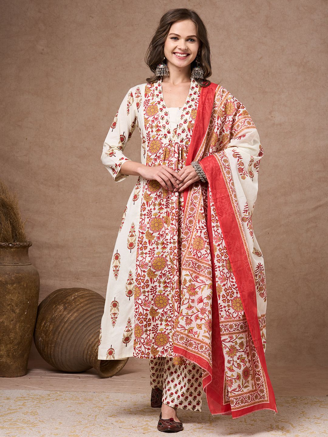 Buy this stylish FASHOR Women Ethnic Motifs Printed Cotton Anarkali Kurta with Trousers & Dupatta at Marincart Nepal. This product offers great quality and value. Perfect for those looking for the latest trends in fashion. Get yours now at unbeatable prices.