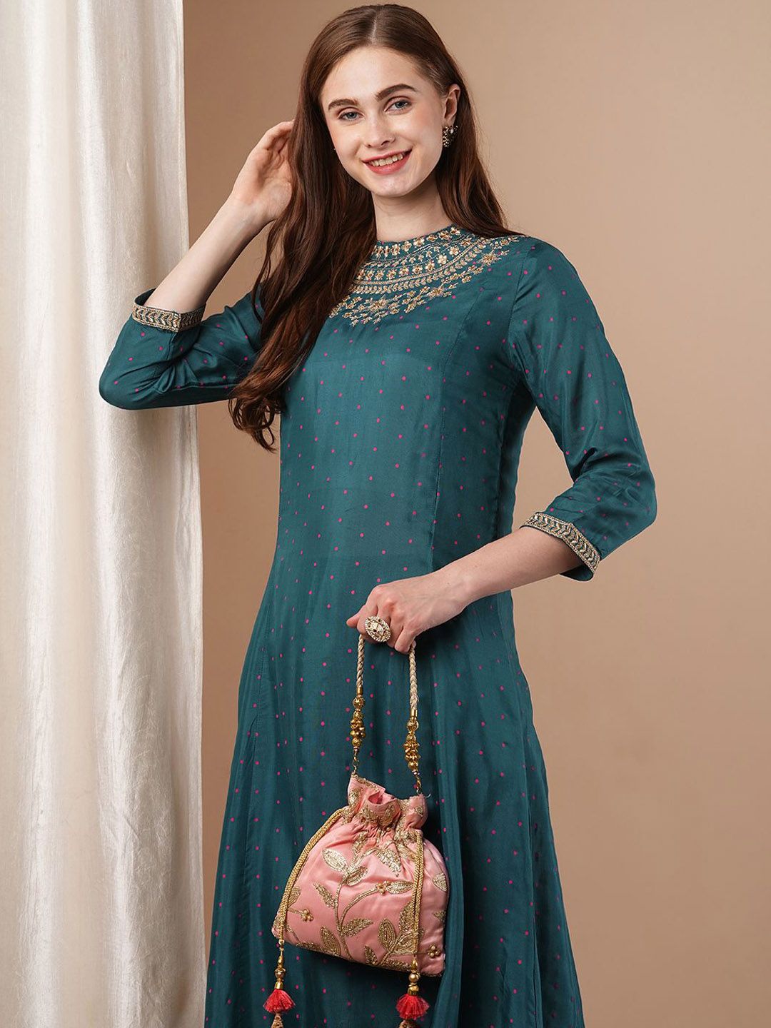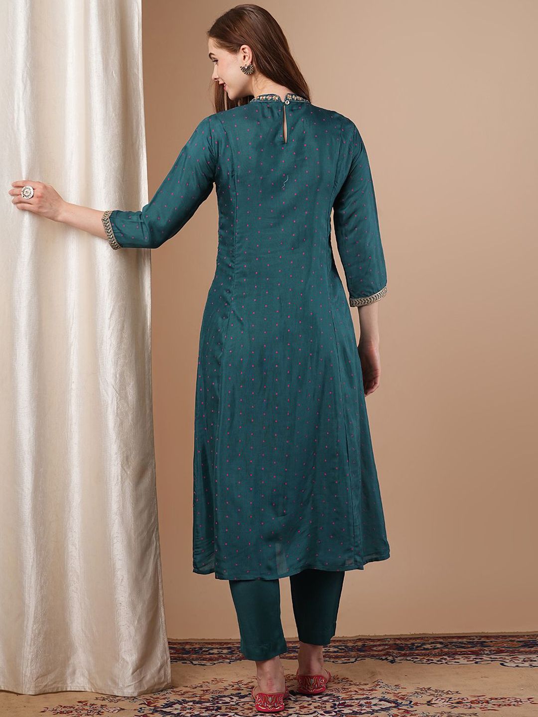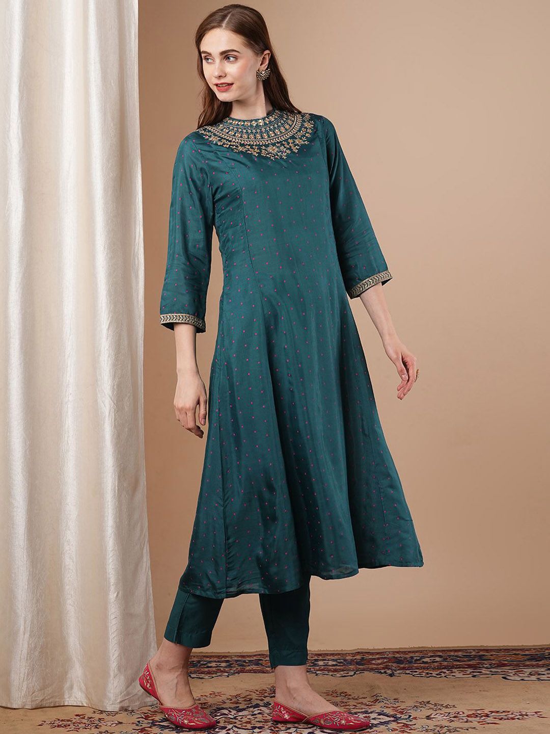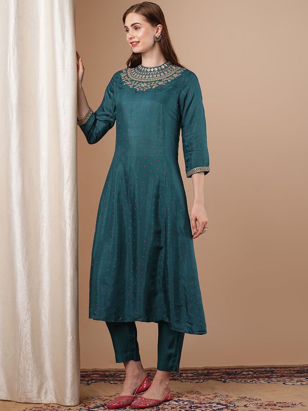 FASHOR Women Ethnic Motifs Printed Panelled Kurta with Trousers