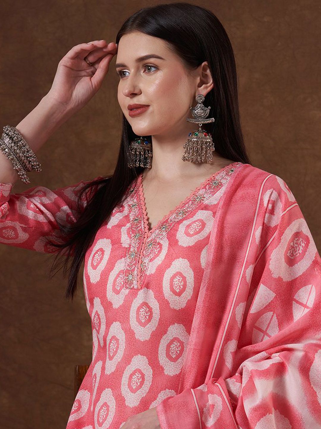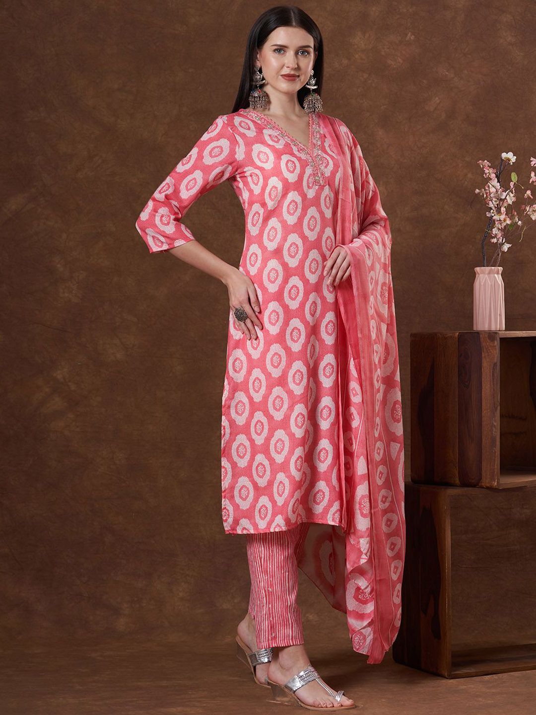 FASHOR Women Ethnic Motifs Printed Pure Cotton Kurta with Trouser & Dupatta