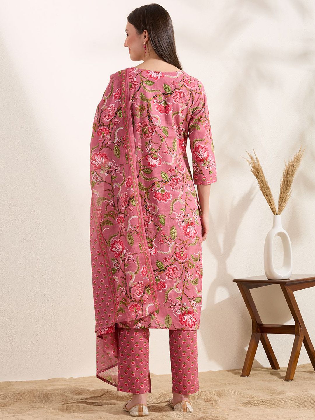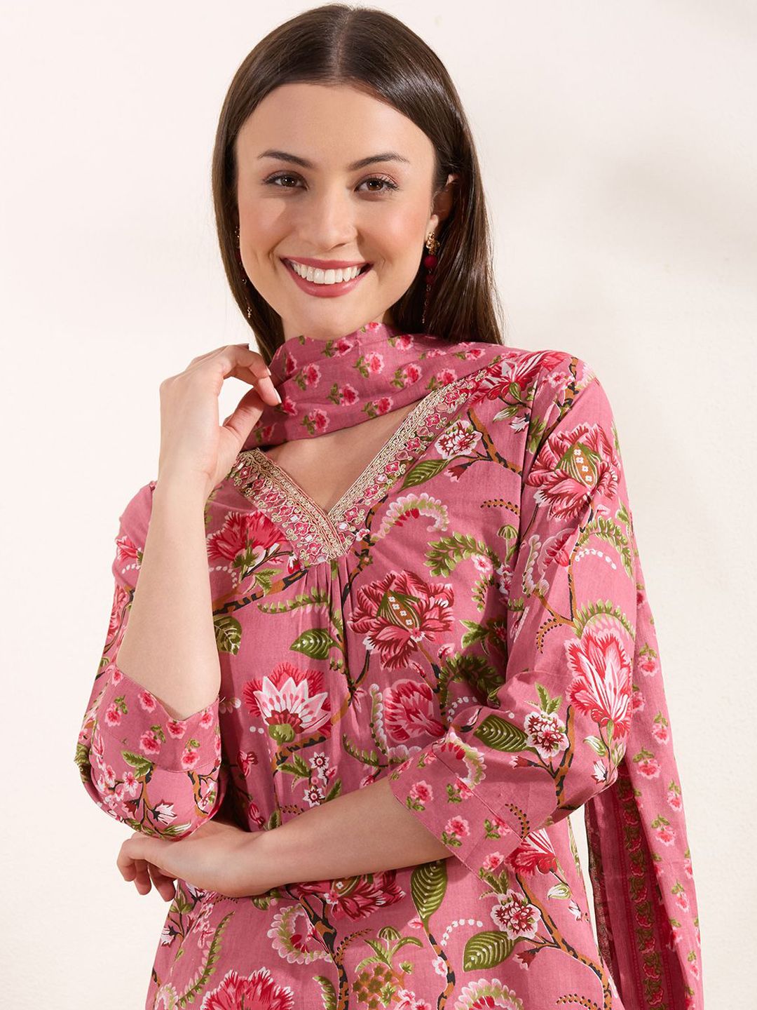 Buy this stylish FASHOR Women Floral Printed Beads and Stones Pure Cotton Kurta with Trousers & Dupatta at Marincart Nepal. This product offers great quality and value. Perfect for those looking for the latest trends in fashion. Get yours now at unbeatable prices.