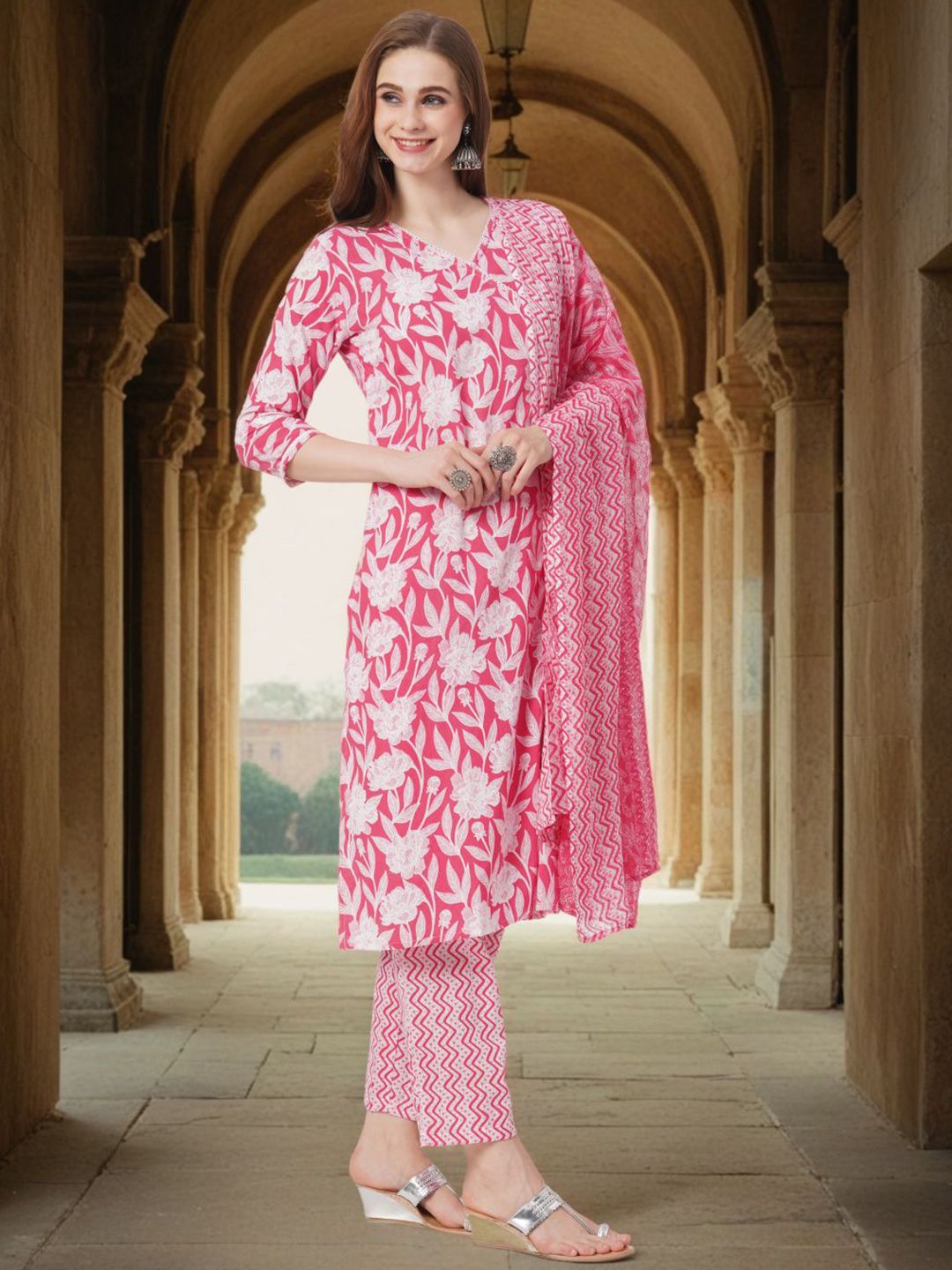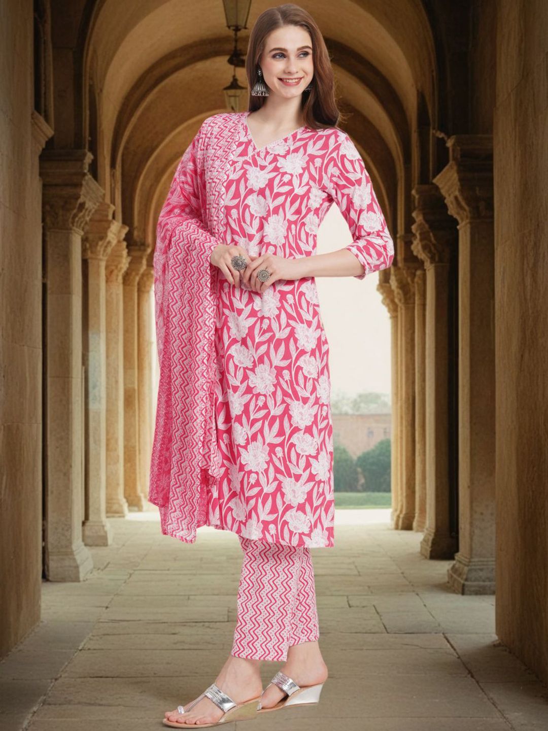 FASHOR Women Floral Printed Kurta with Trousers & Dupatta