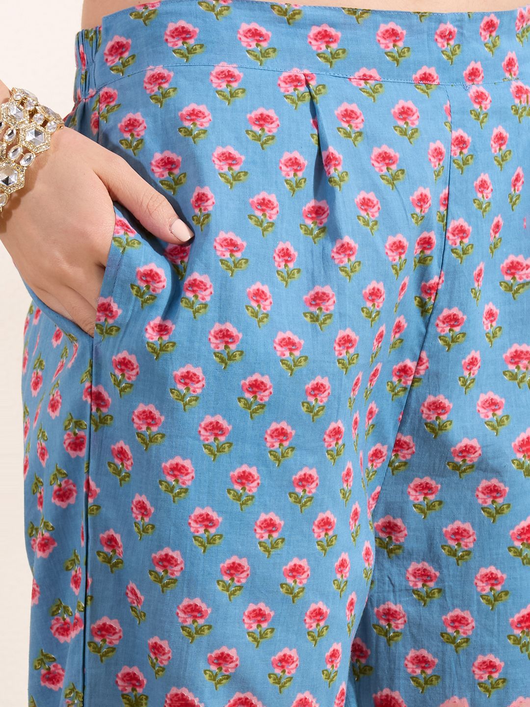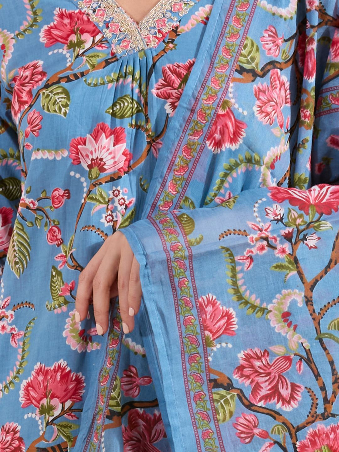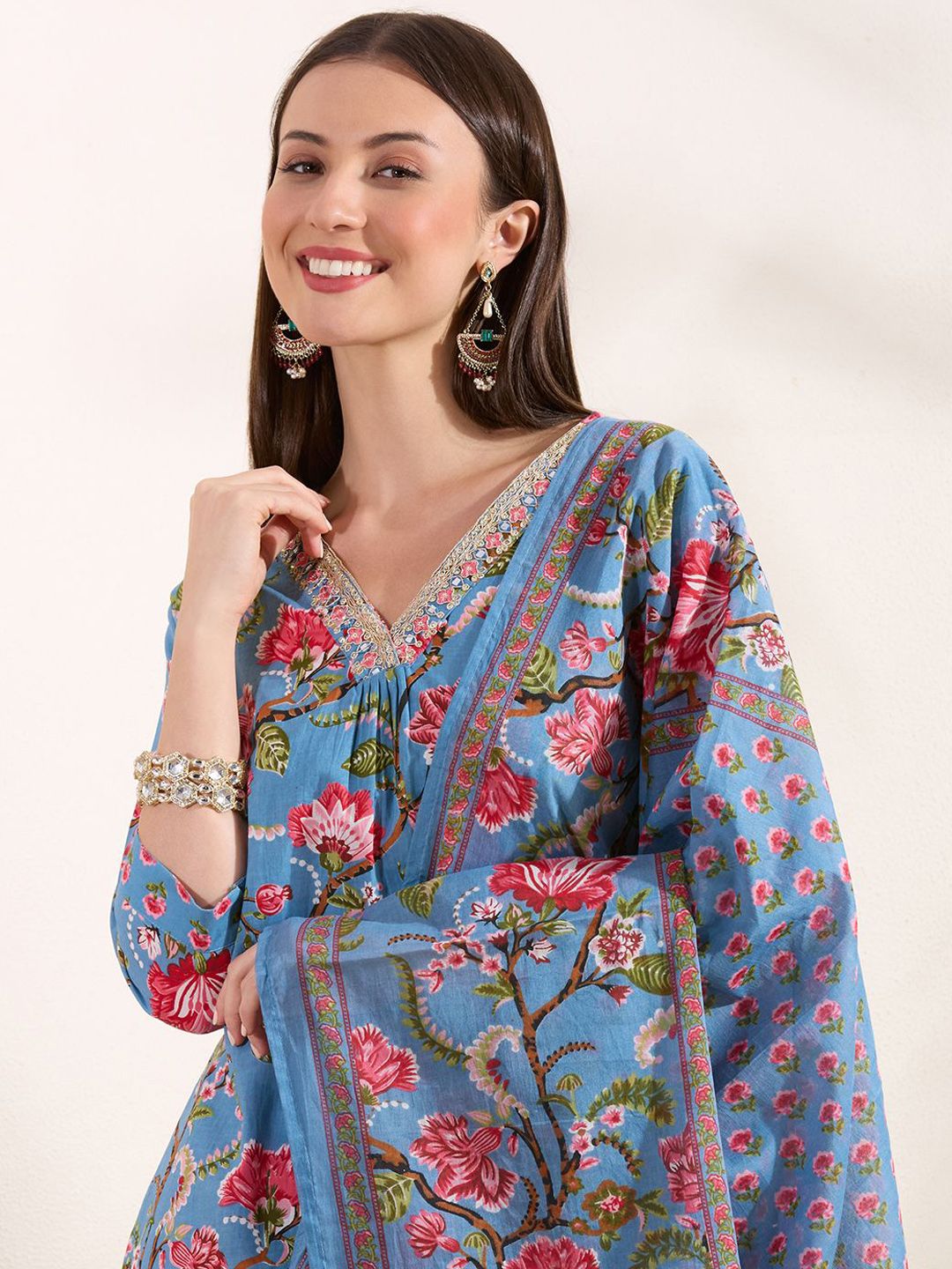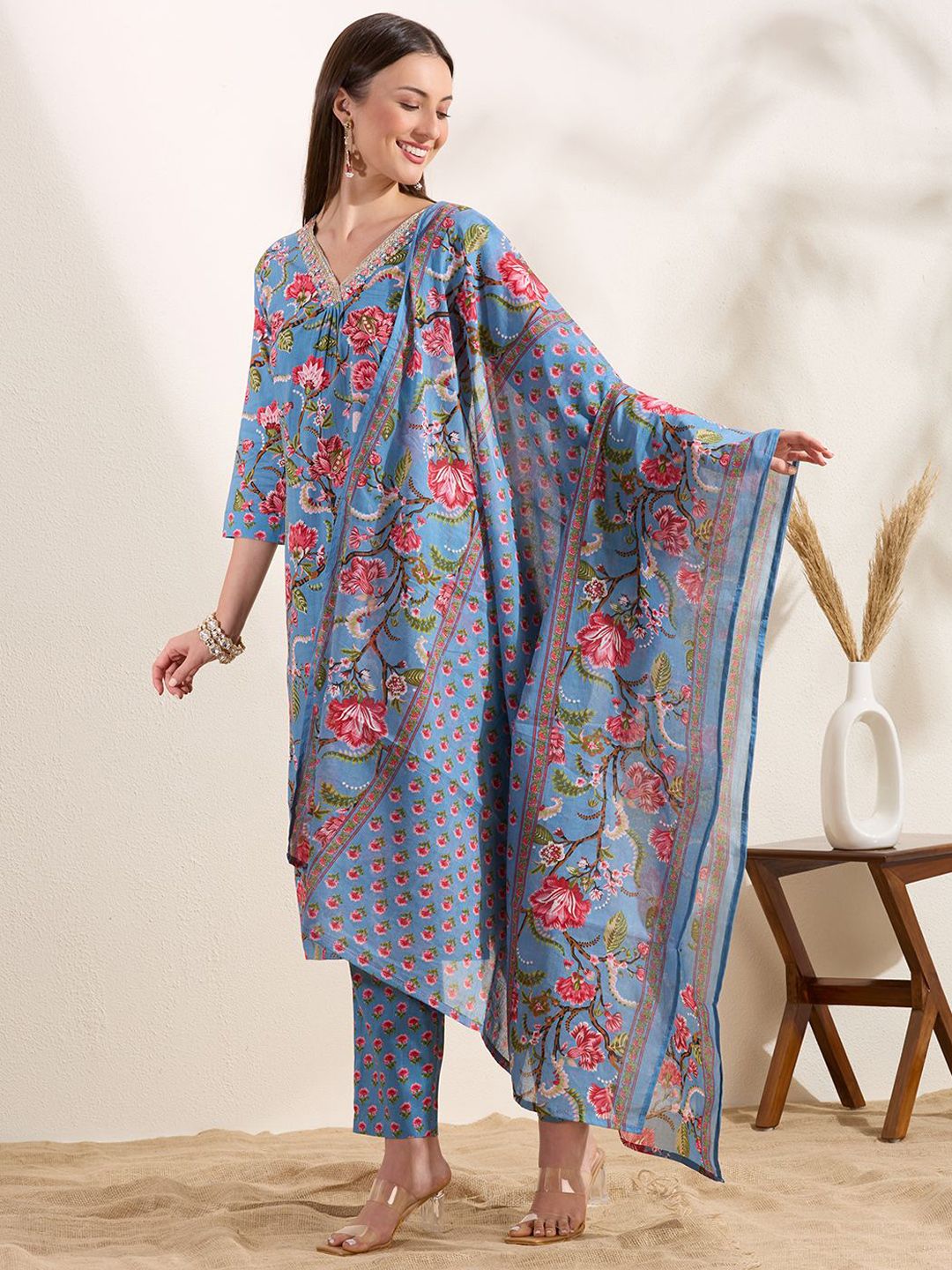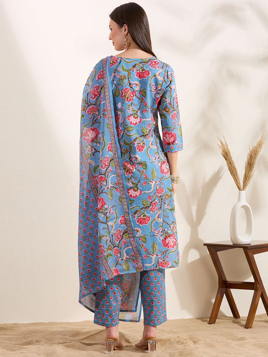 FASHOR Women Floral Printed Pure Cotton Kurta with Trouser & Dupatta