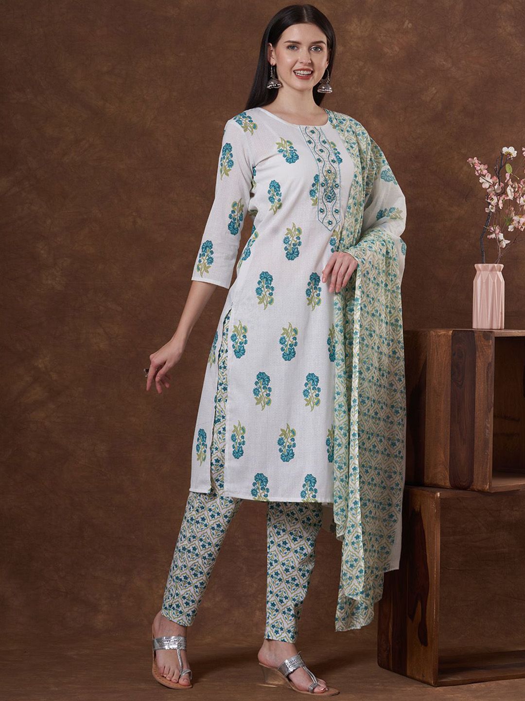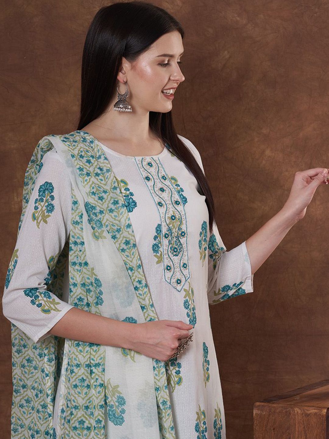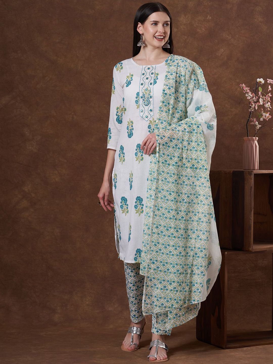 FASHOR Women Foral Printed Round Neck Kurta With Trousers & Dupatta Sets