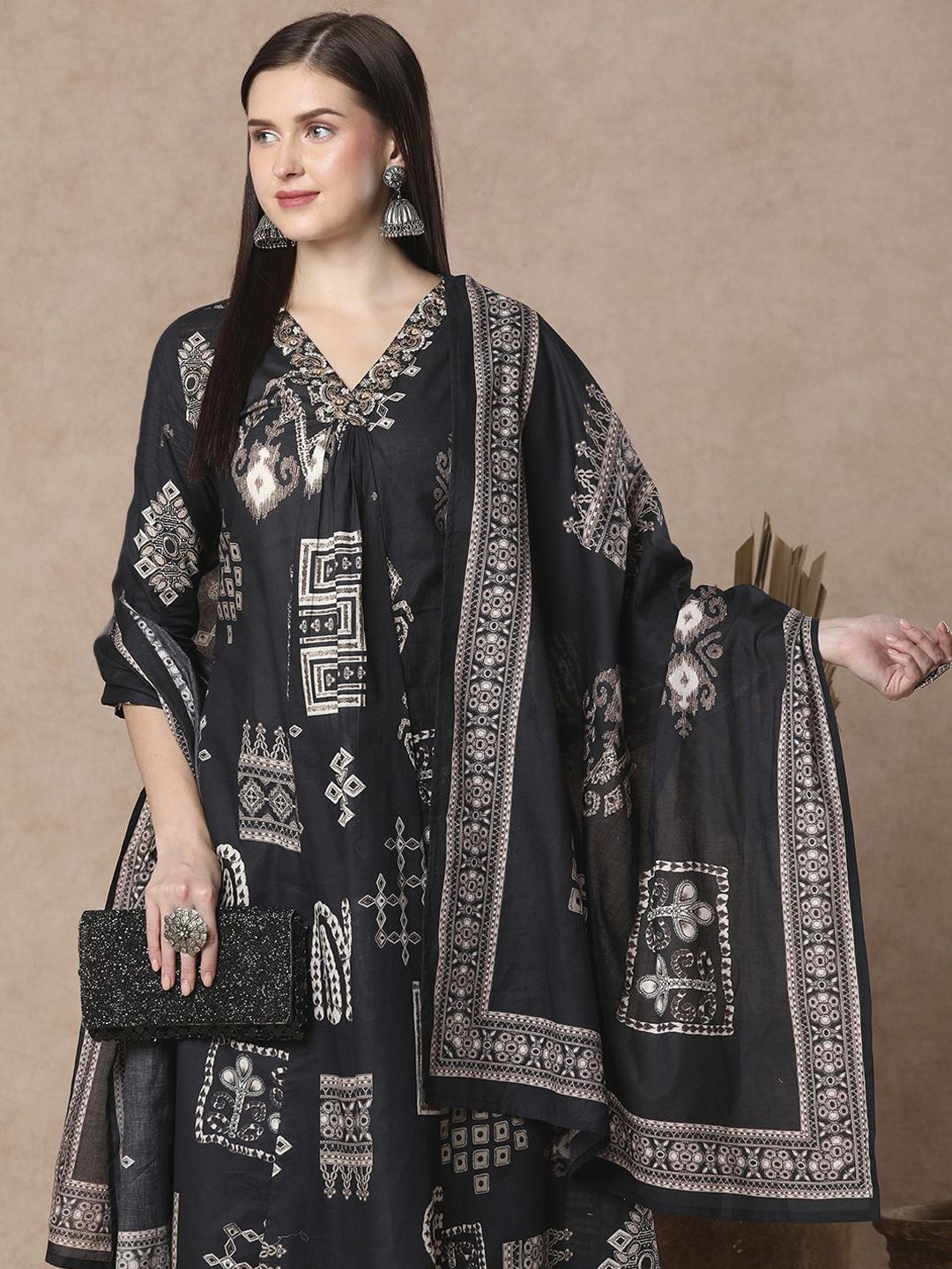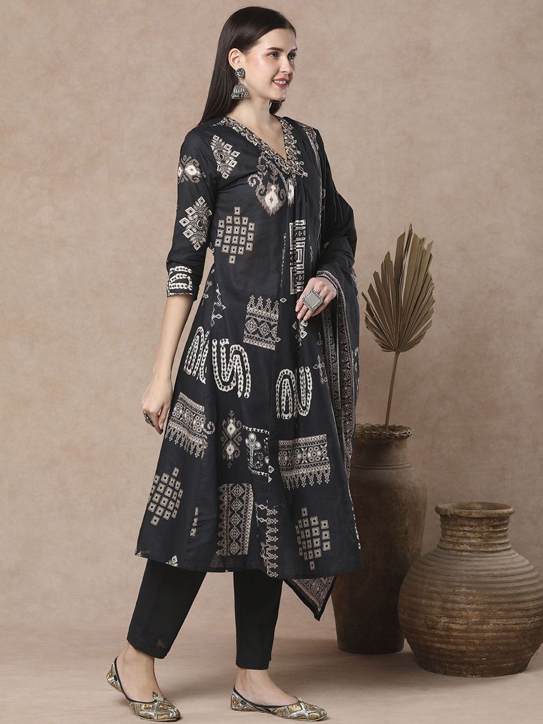 Buy this stylish FASHOR Women Geometric Printed Cotton A-Line Kurta with Trousers & Dupatta at Marincart Nepal. This product offers great quality and value. Perfect for those looking for the latest trends in fashion. Get yours now at unbeatable prices.