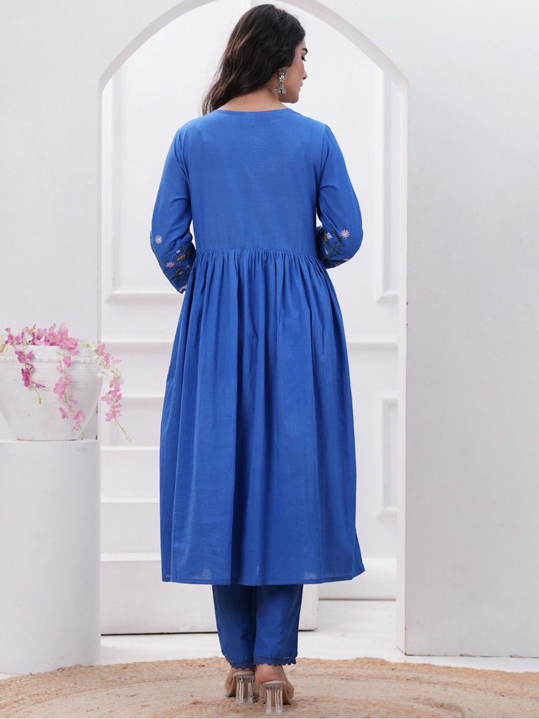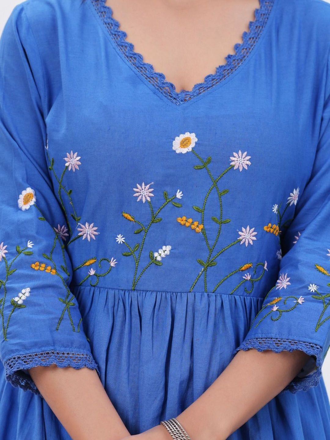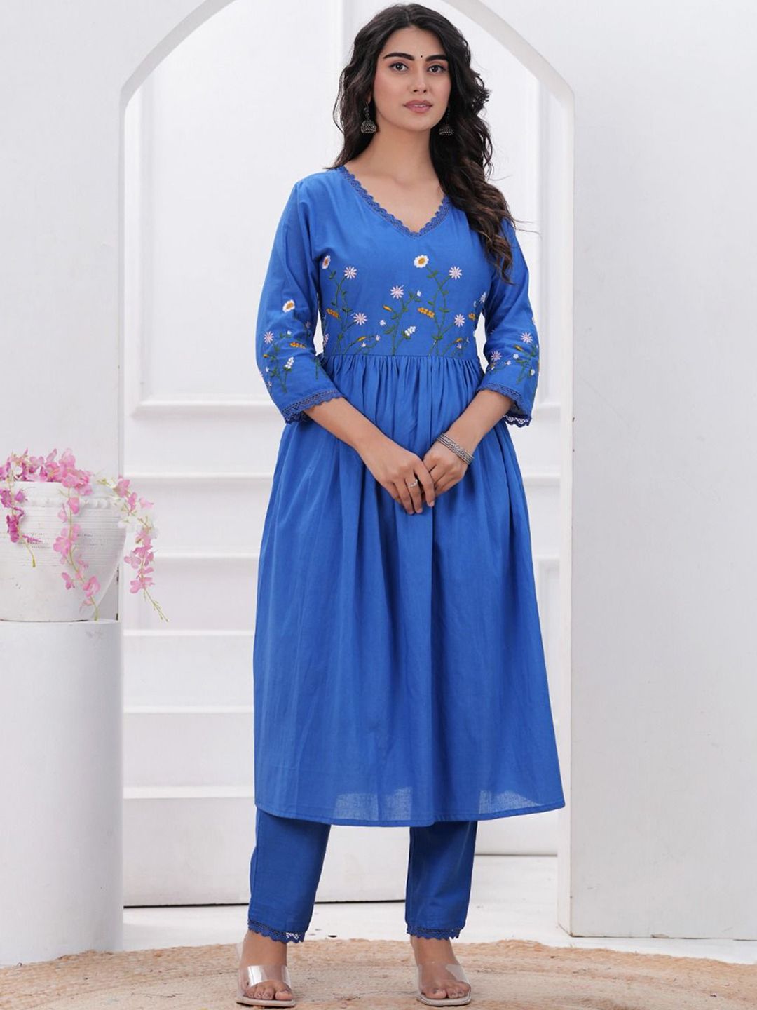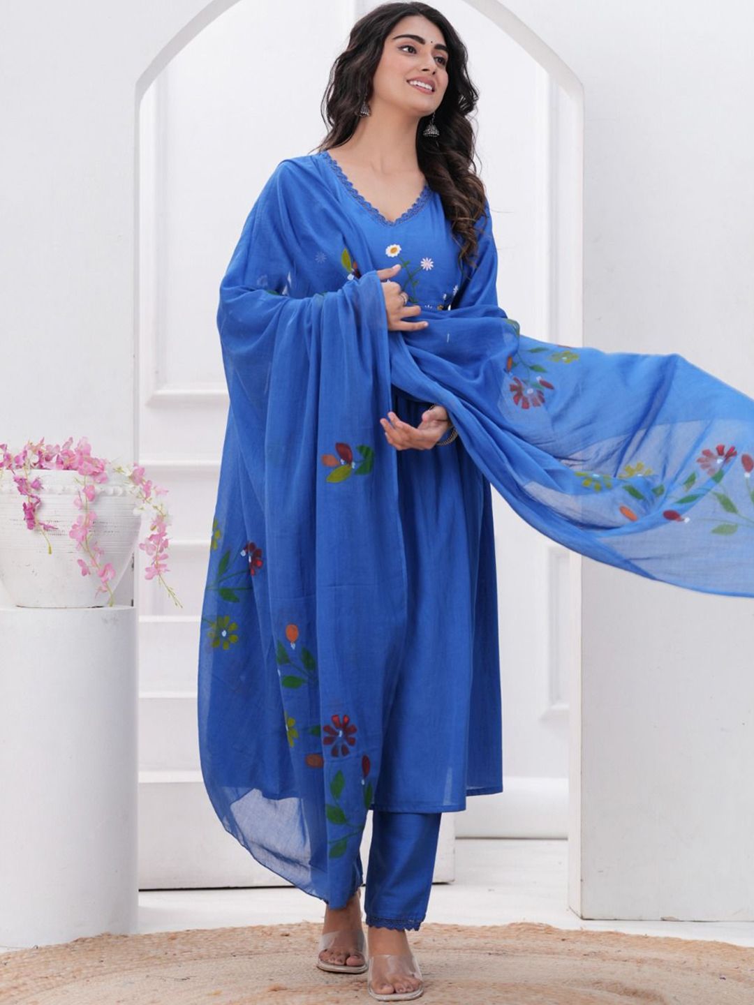 FCV Floral Embroidered V-Neck Pure Cotton Kurta with Salwar & Dupatta