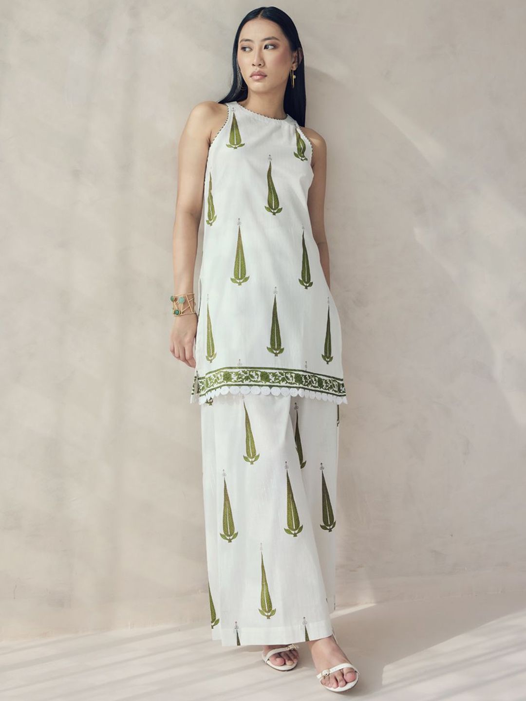 FIORRA Women Floral Printed Cotton Kurta with Palazzo