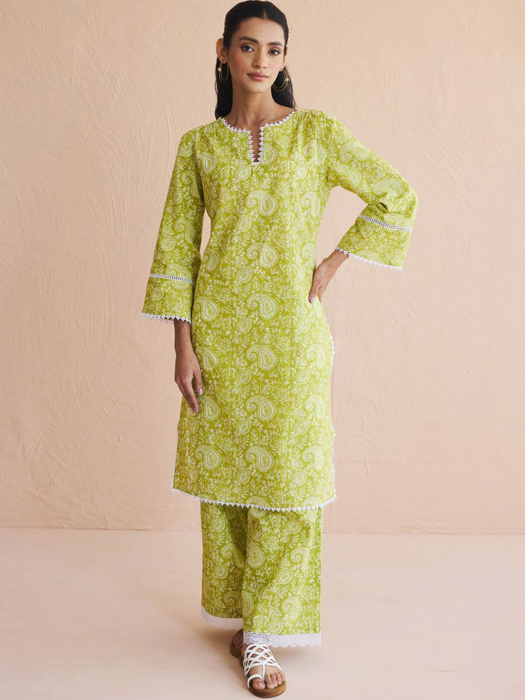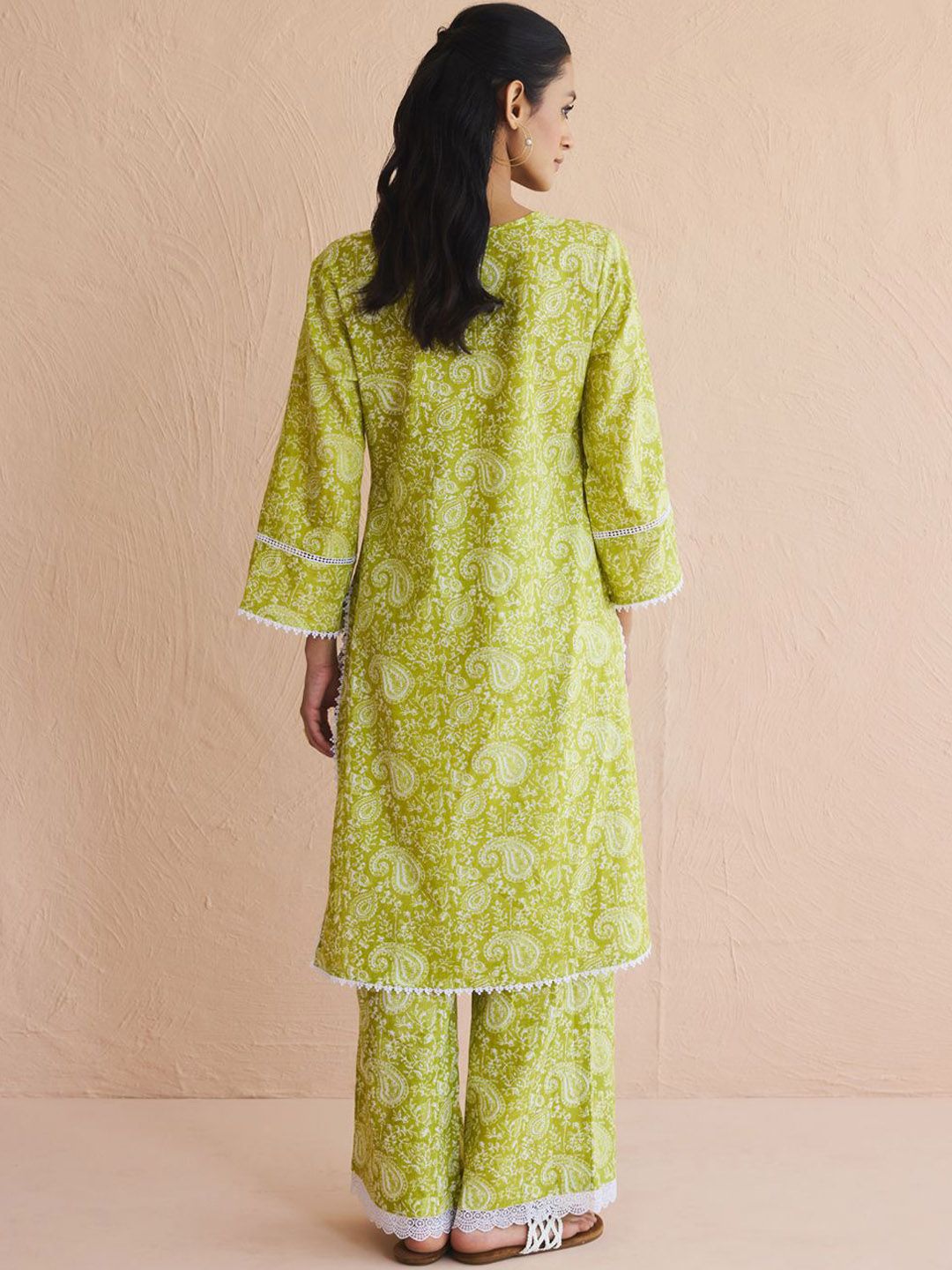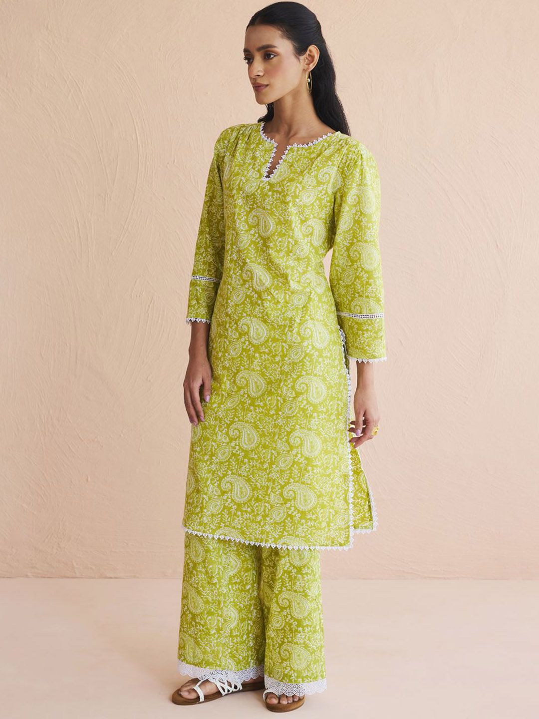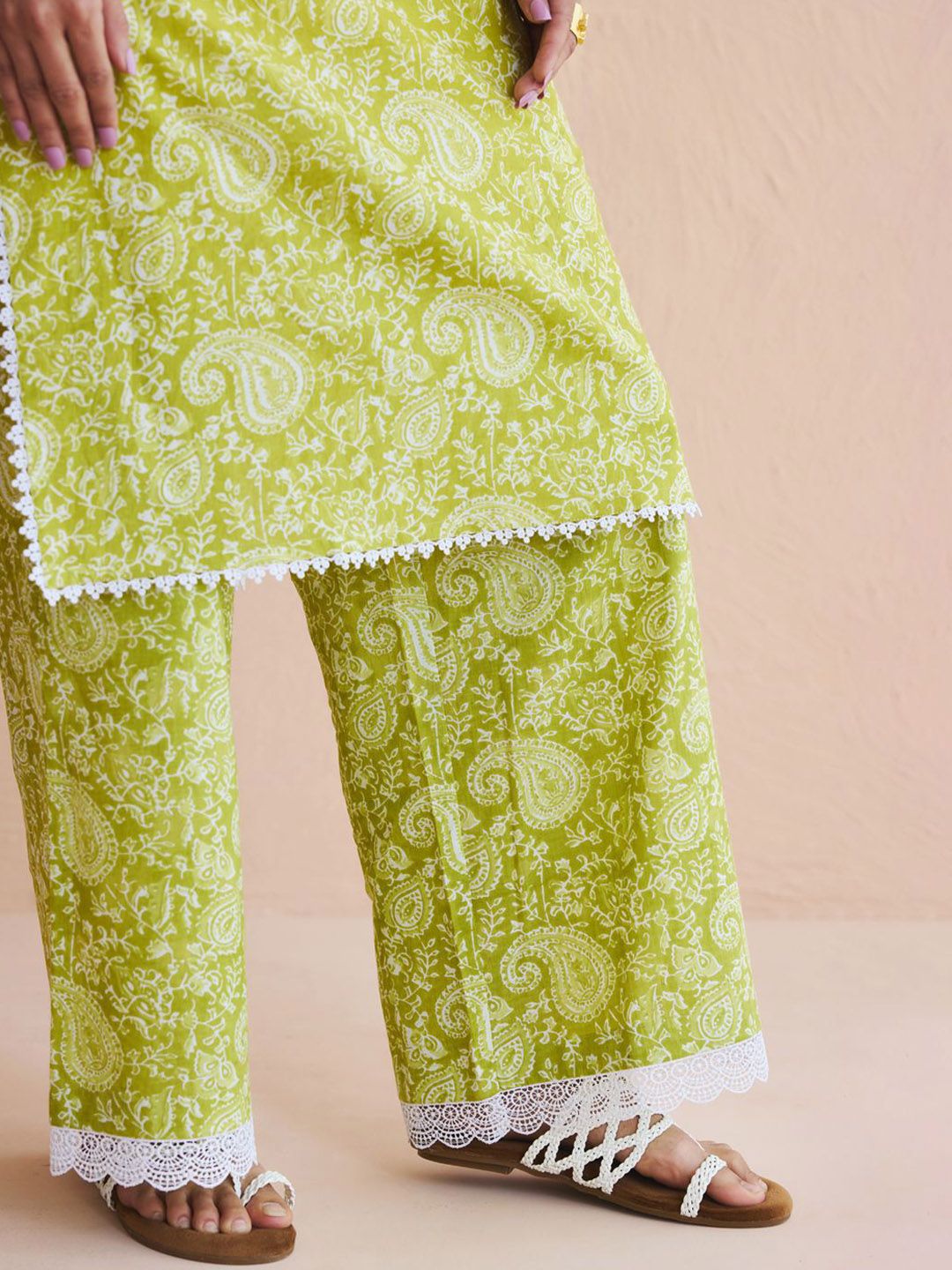 FIORRA Women Paisley Printed Cotton Kurta with Palazzo