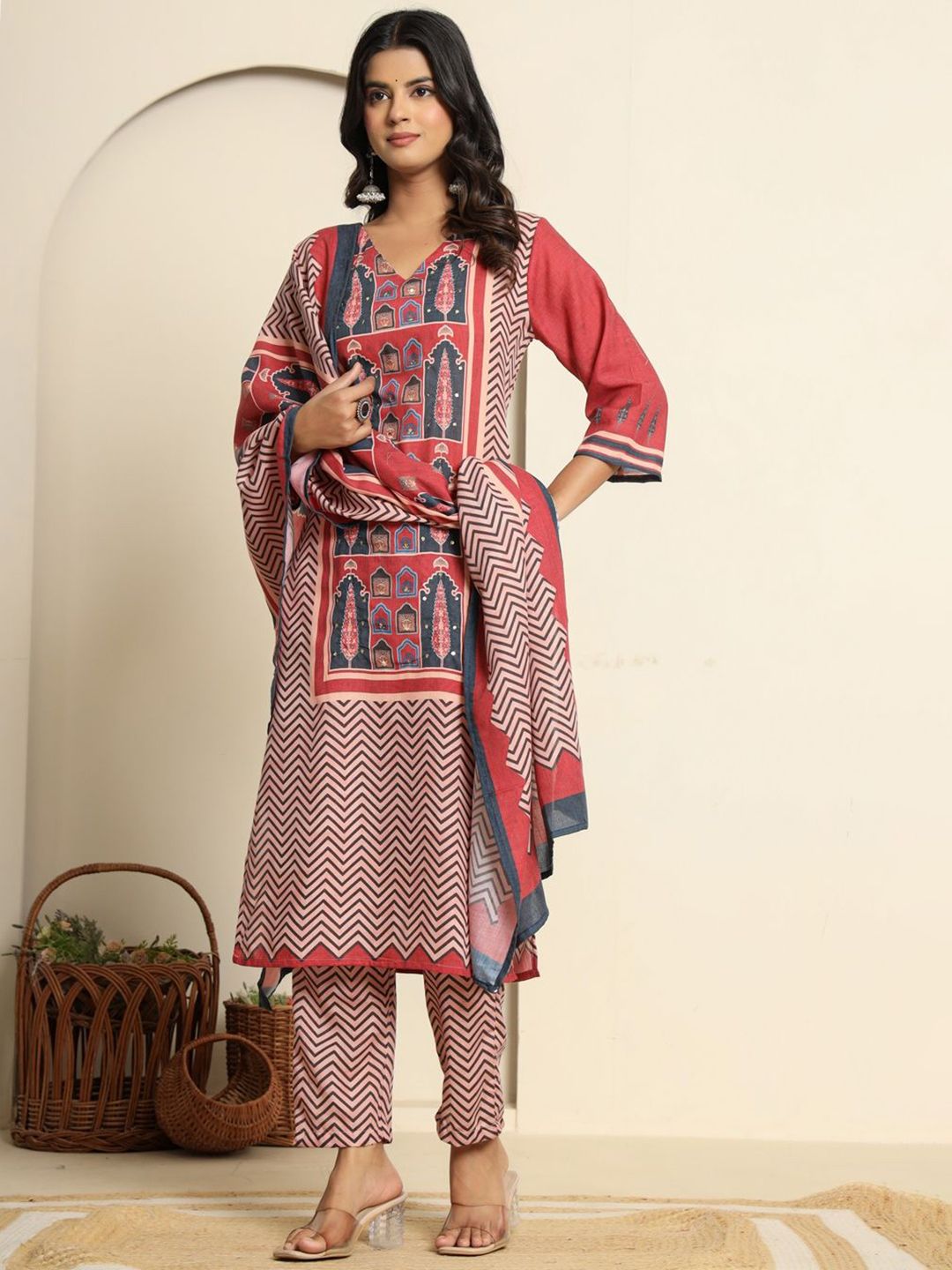 Buy this stylish FLAMBOYANT Women Ethnic Motifs Printed Regular Pure Cotton Kurta with Trousers & Dupatta at Marincart Nepal. This product offers great quality and value. Perfect for those looking for the latest trends in fashion. Get yours now at unbeatable prices.