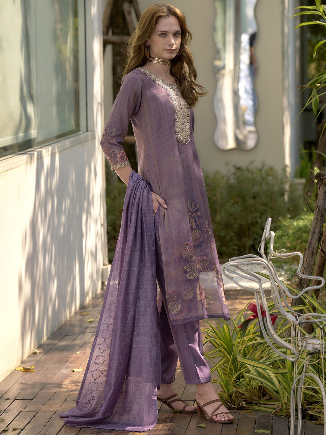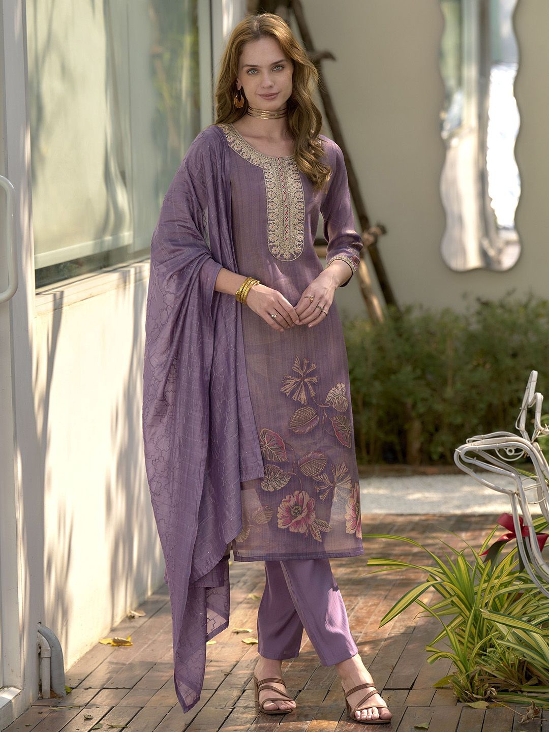 Buy this stylish FLAVICA Women Ethnic Motifs Printed Regular Sequinned Tissue Kurta with Trousers & Dupatta at Marincart Nepal. This product offers great quality and value. Perfect for those looking for the latest trends in fashion. Get yours now at unbeatable prices.