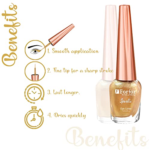 FORFOR Sensational Liquid Glitter Eyeliner Smudge-Proof and Water Proof 7 ml Each (Combo of 2, Golden, Silver)