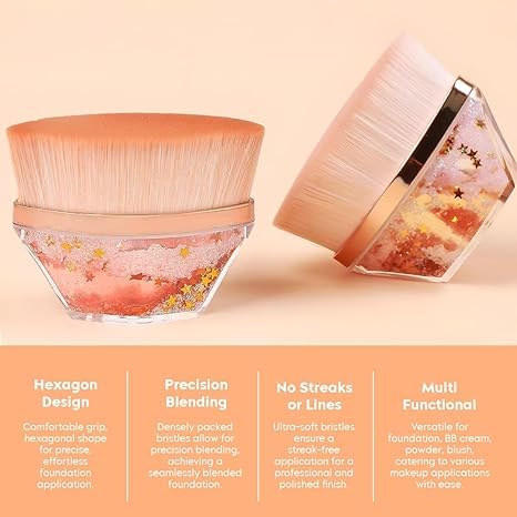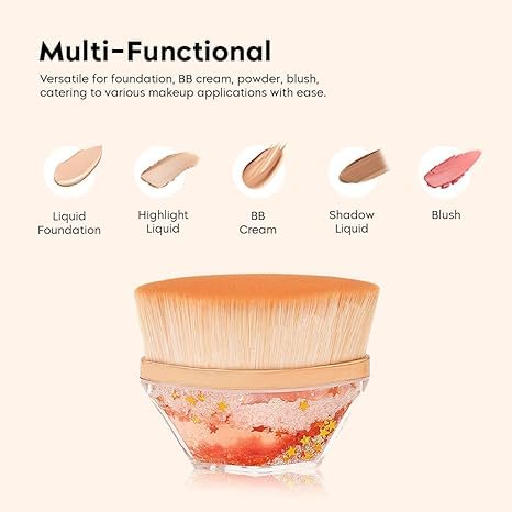 The Flawless Foundation Brush Is Made of a Unique Iron-Type Design Which Is Easier to Deal with Dead Corners Such as The Nose Shadow, Under the Eyes, And So On. Micro-Fine Soft Dense Beautifying Fiber Which Is Very Soft to The Touch and Skin-Friendly. The Tip of The Hair Feels Gentle and Allows the Primer to Be Applied Thinly to The Fine Irregularities and Texture of The Pores. This Brush Fits for All Skin Types; You Can Have a Beautiful Face with Its Help. Ideal For Powder, Liquid, Cream, Blush, Concealer, And Foundation Cosmetics. Only A Small Quantity of Foundation on The Brush Is Needed for The Best Results. This flat top kabuki foundation brush which is very soft to touch and apply foundation on your face, skin-friendly. This Foundation Brush Can Help You Complete 360° All-Direction Makeups In 10 Seconds! It's Perfect for Both Beginners and Professional Makeup Artists. And It's Easy to Clean with Just A Few Swipes of A Makeup Removal Wipe.