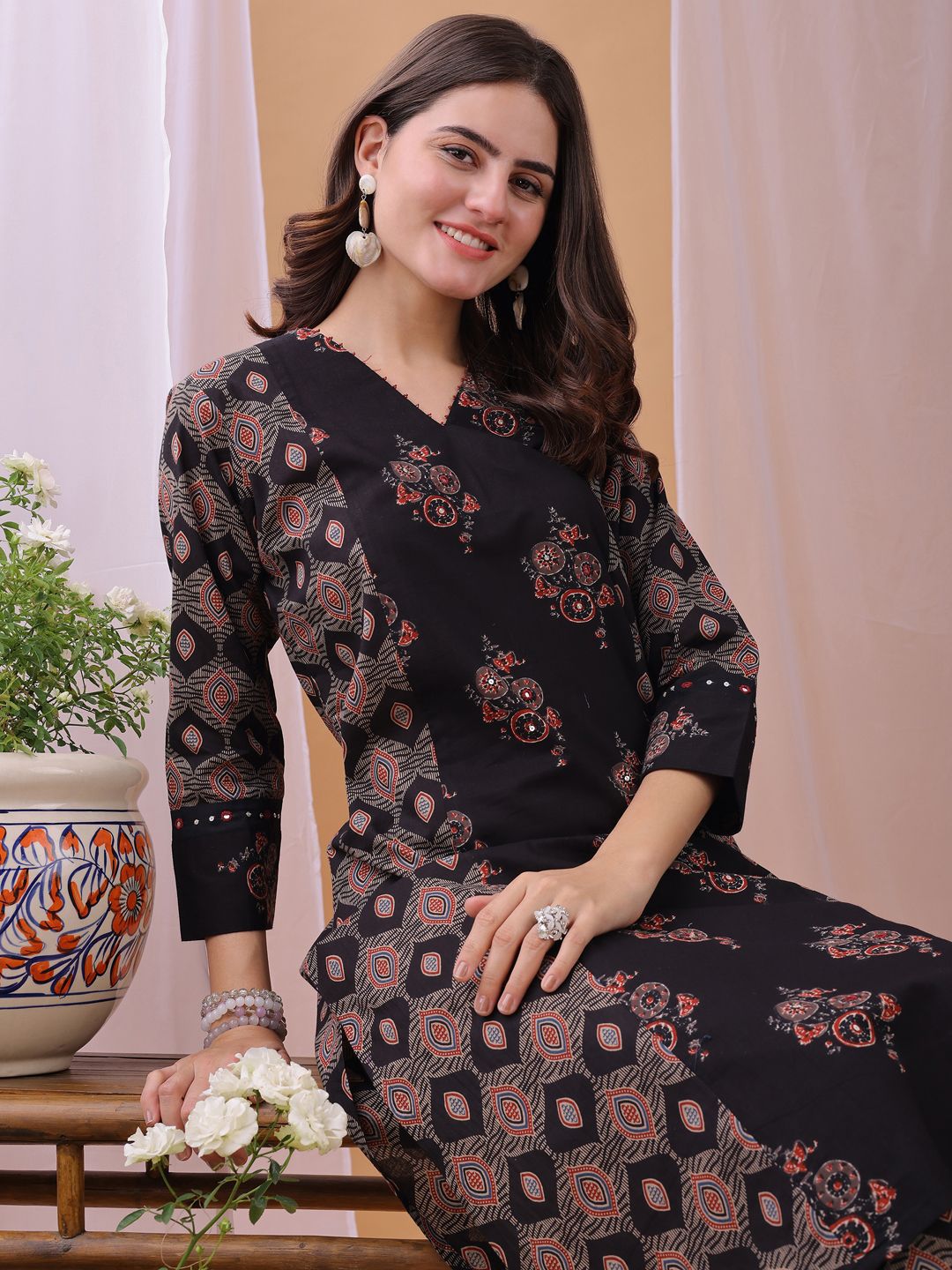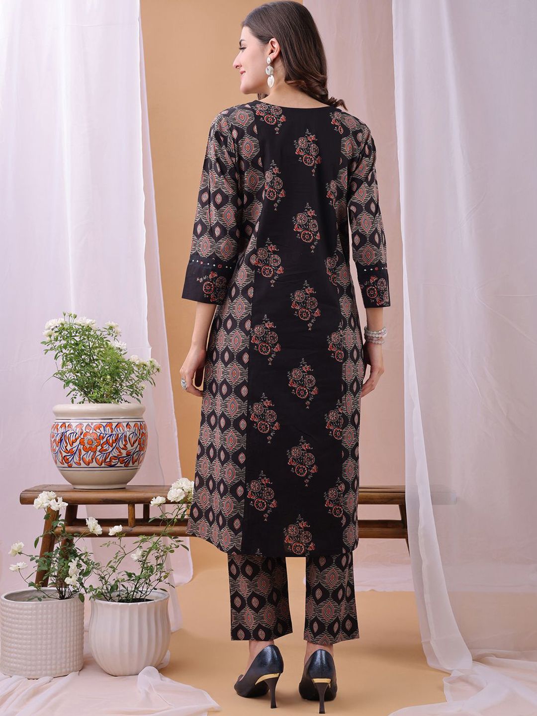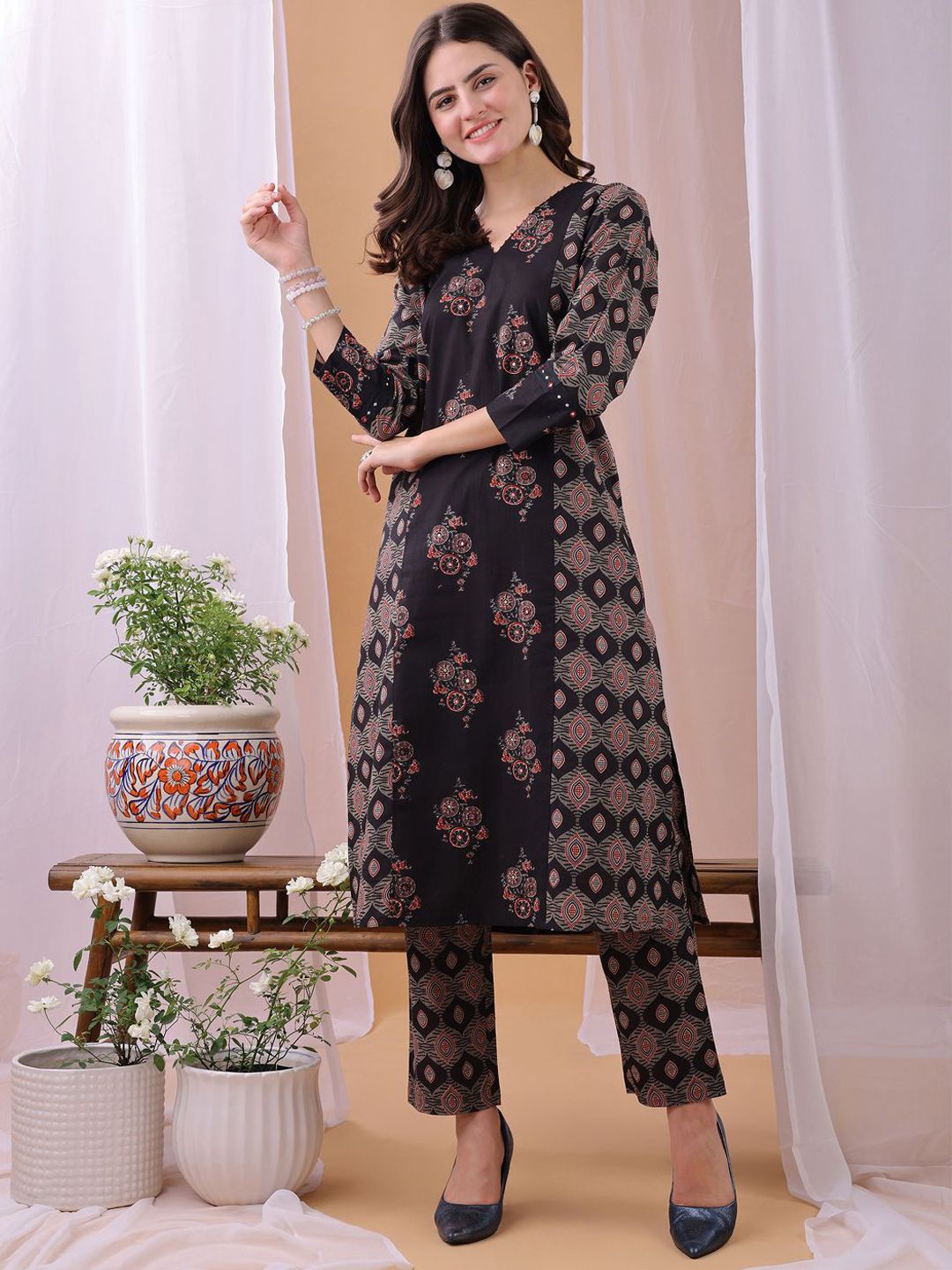 Fourleaf Women Floral Printed Regular Pure Cotton Kurta with Trousers