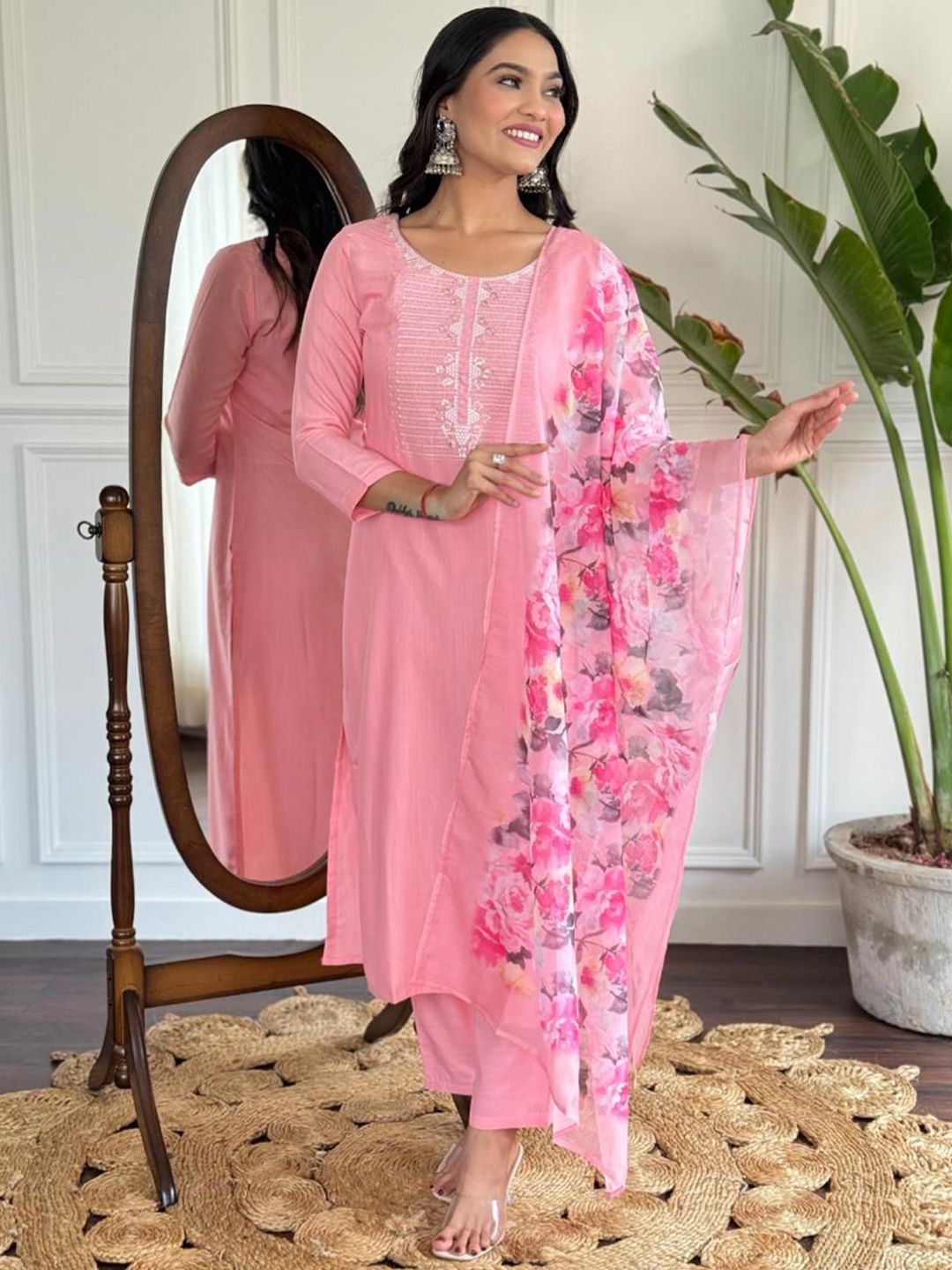 FVD Adults-Women Woven Design Embroidered Kurta with Trousers & Dupatta