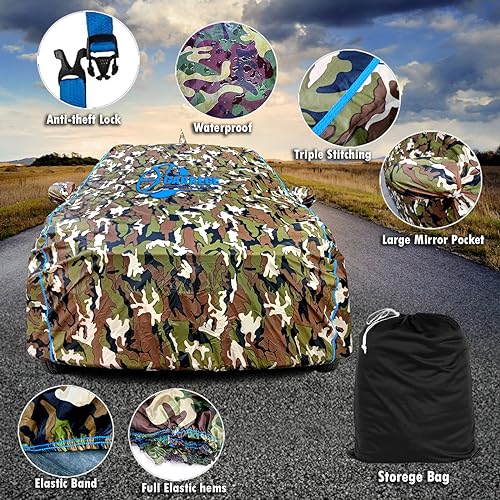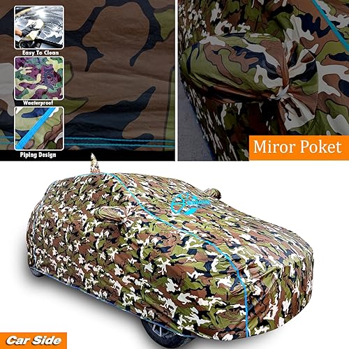 CUSTOM FIT PROFESSIONAL DESIGN- This cover is custom-fit and specially made to fit to your car model. Windproof strap fix your auto cover properly and hold it well in heavy windy weather. Our covers are triple coated interlock stitched with separate Mirror Pocket HIGH REFLECTIVE UPPER LAYER- High Reflective layer helps to keeps car cool on hot days. It protects car from harmful UV rays and keeps car less warm than any other cover COMPLETE PROTECTION- No Matter The Hot Sun Or The Cold Weather. Our Car Covers Can Handle It All. The Powerful material keeps your car safe from UV Rays, Sand, Dust, Leaves, Branches, Snow, Rain, Frost, and Birds Dropping; PREMIUM MATERIAL-Made from a robust imported American fabric with soft cotton lining. It is Waterproof which is great for rainproof & snow proof Please be ensure before purchase if first image cover has antena mention then we provided with antena these image are shown in the add is actually car of this cover if antenna is not available than don’t expect we are made with antenna,if available in the image we are made with antenna pouch cover also you can read description before purchase Water Resistance Level: COMPLETE WATERPROOF UV RAY DUST DING HUMIDITY MONSOON HARM PARTICLES THESE ALL PROTECTION IN THIS COVER NO ANY COLOR STAIN ISSUES WITHOUT ANY HESITATE BUY IT