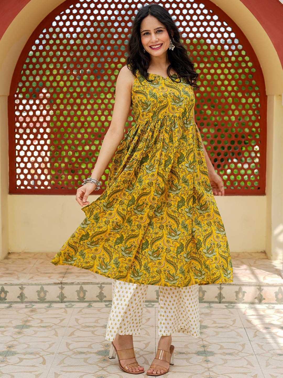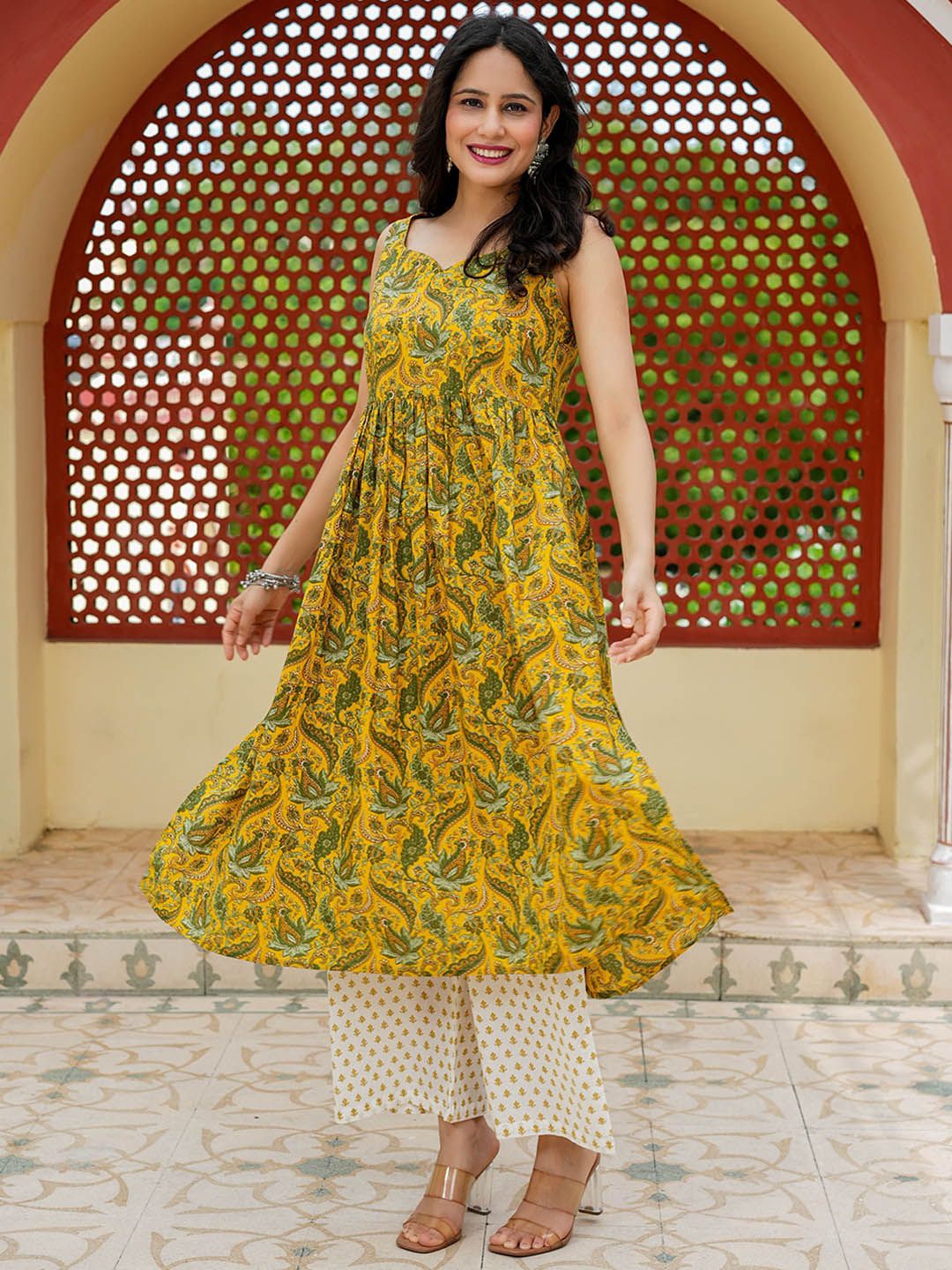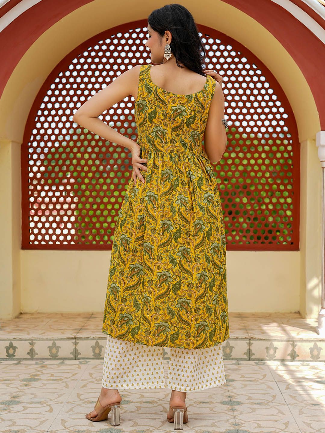 GAYRAA Women Floral Printed Cotton A-Line Kurta with Palazzos
