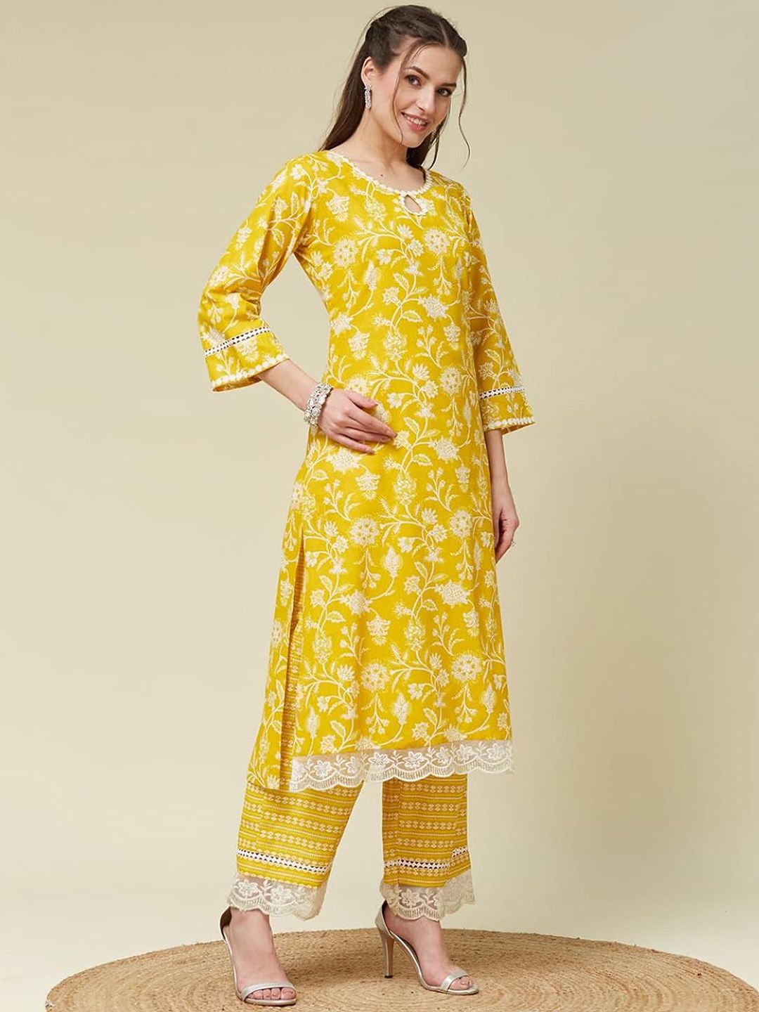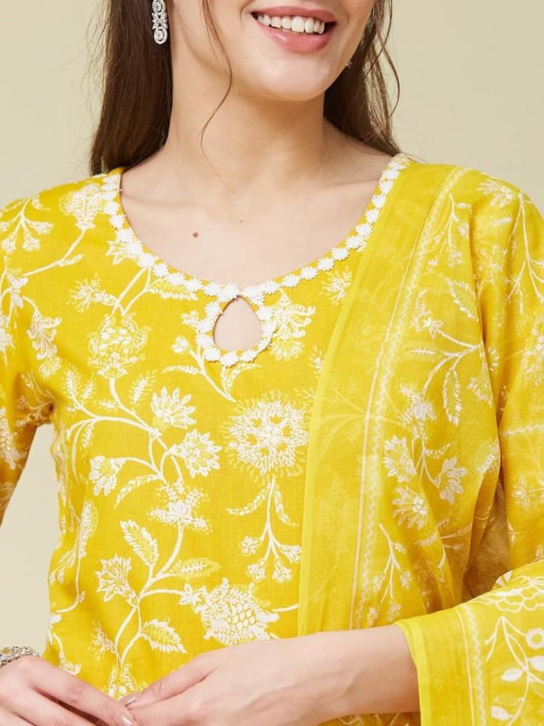 GEKHA Women Floral Printed Cotton Kurta with Trousers & Dupatta
