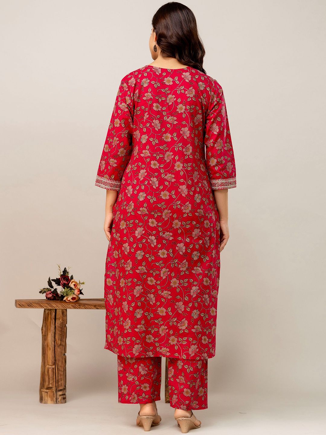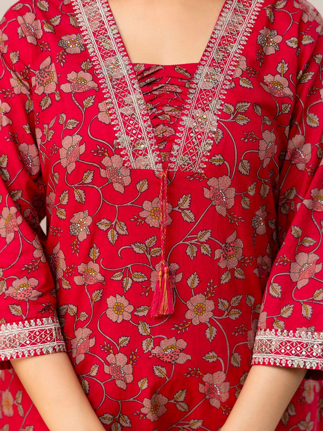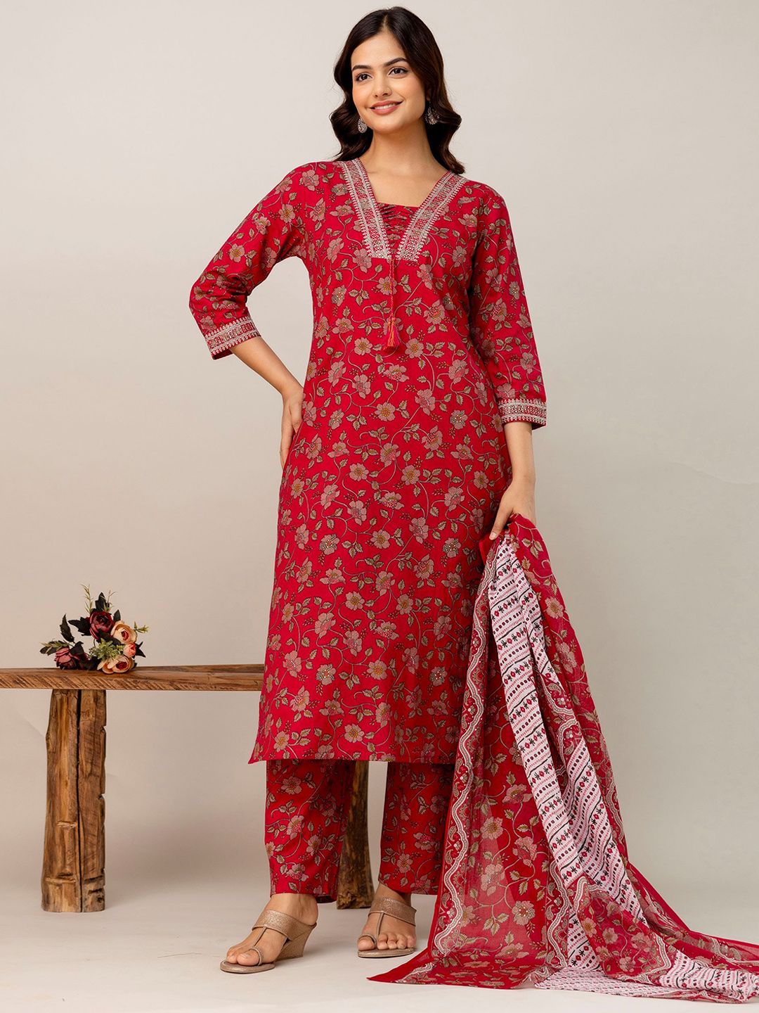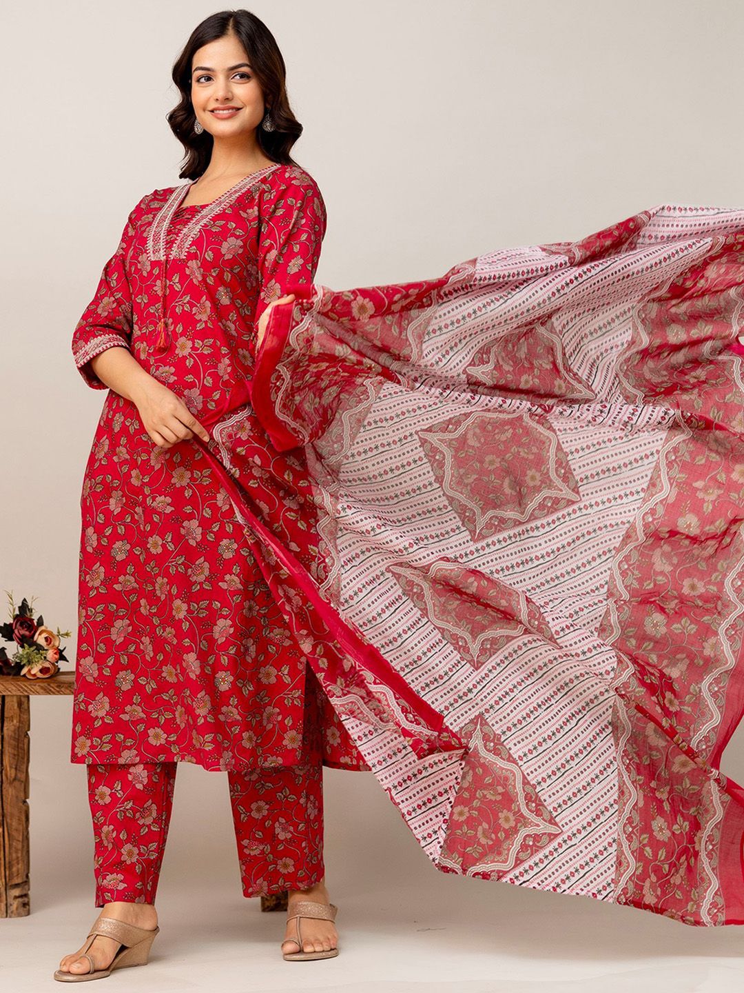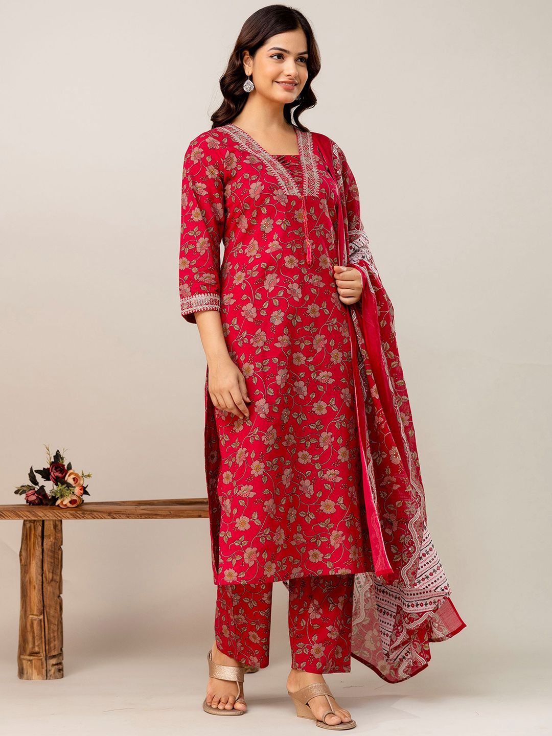 Gekha Women Floral Printed Cotton Kurta with Trousers & Dupatta