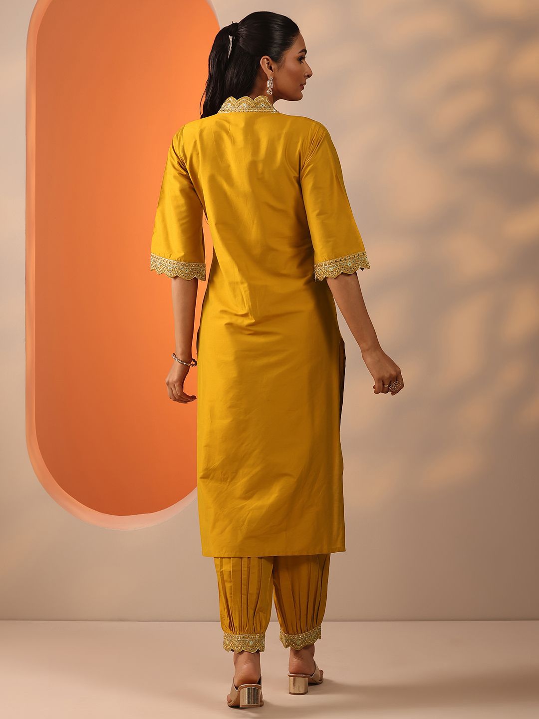 Gerua By Libas Ethnic Motifs Embroidered V-Neck Sequinned Straight Kurta With Salwar