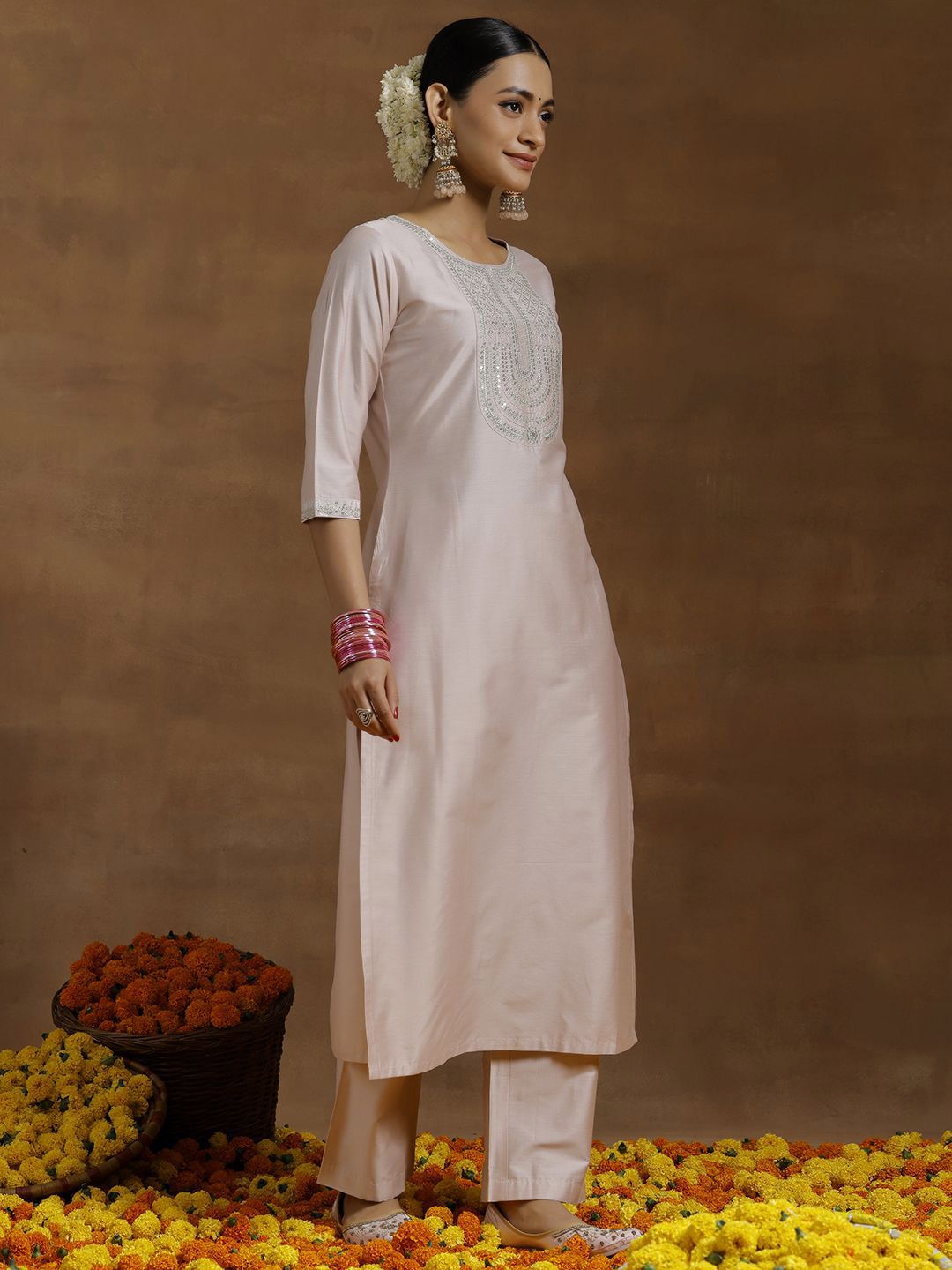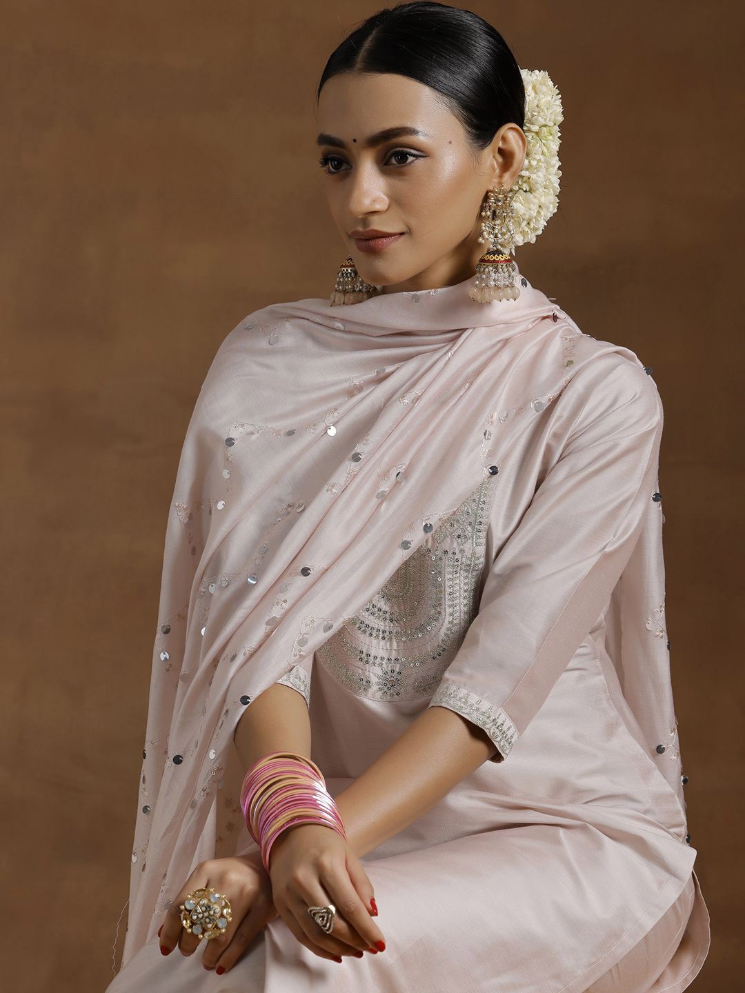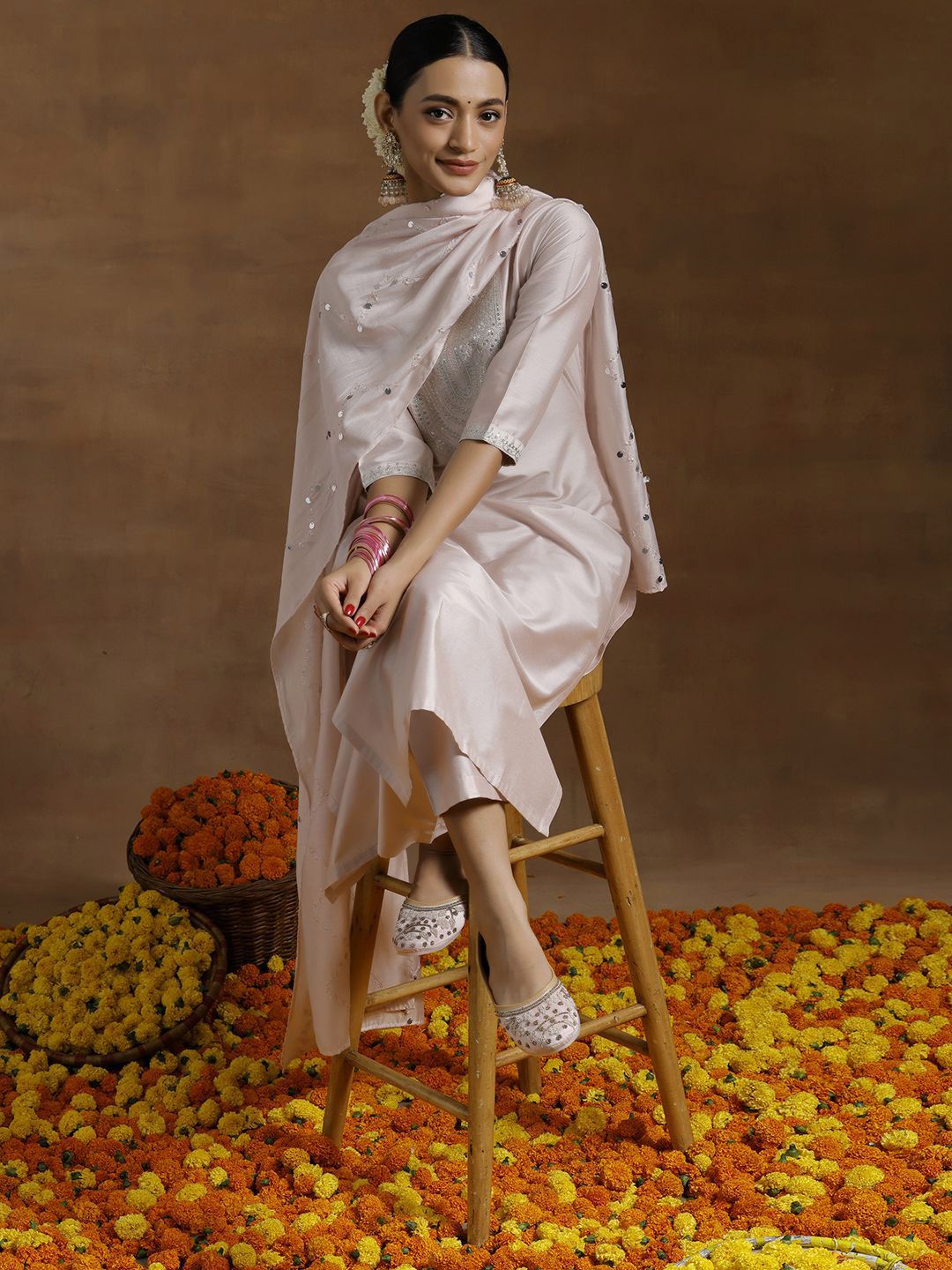 Gerua By Libas Floral Yoke Design Sequinned Straight Kurta & Trousers With Dupatta