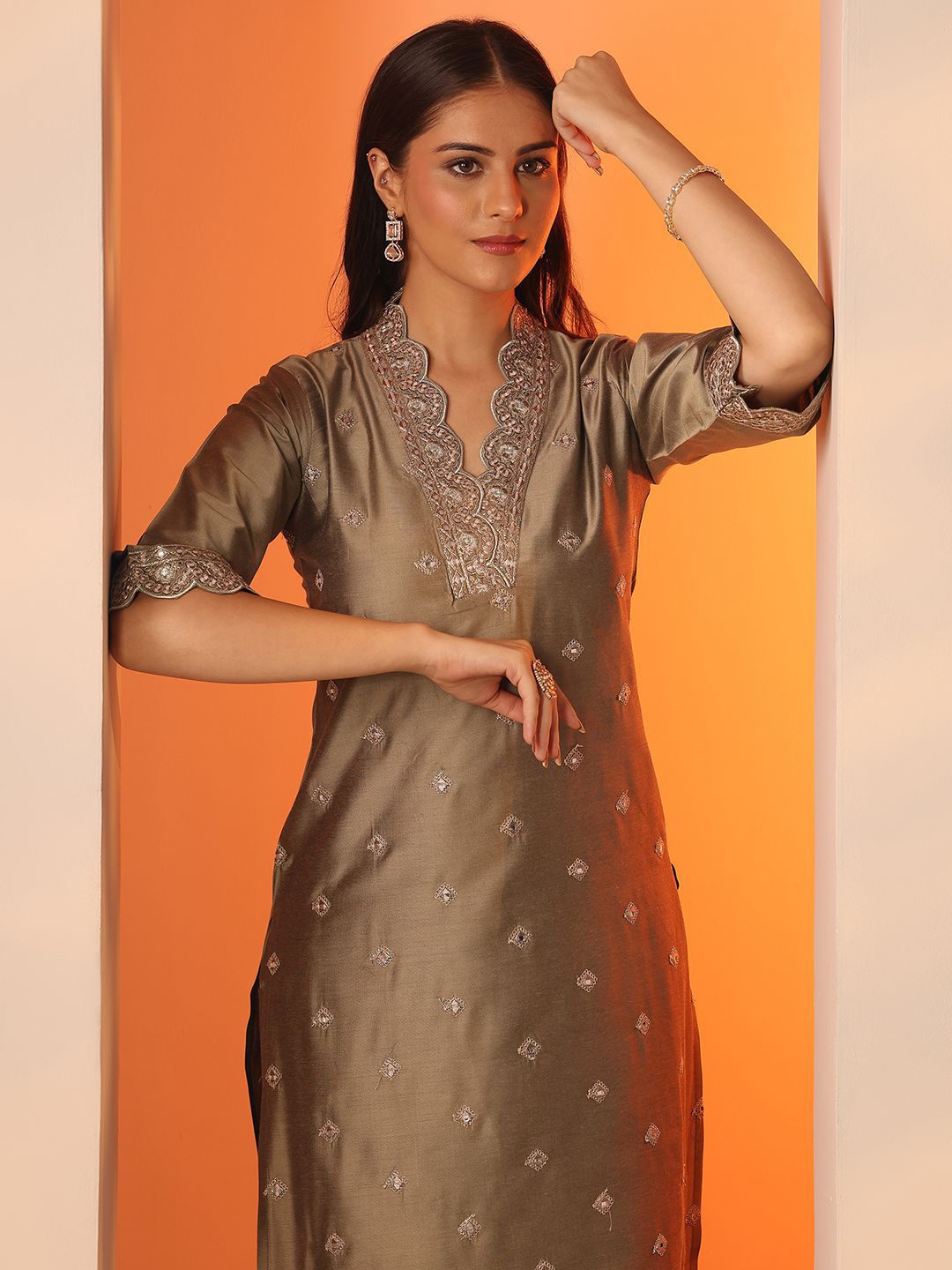 Buy this stylish Gerua By Libas Women Ethnic Motifs Embroidered Regular Thread Work Kurta with Salwar at Marincart Nepal. This product offers great quality and value. Perfect for those looking for the latest trends in fashion. Get yours now at unbeatable prices.