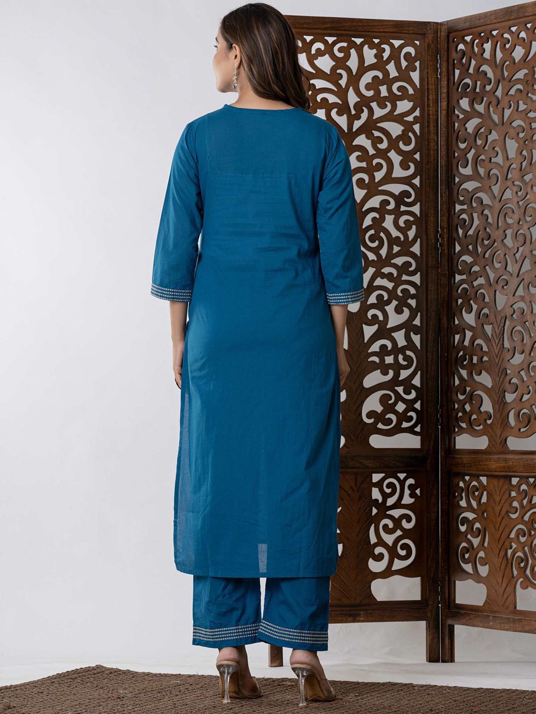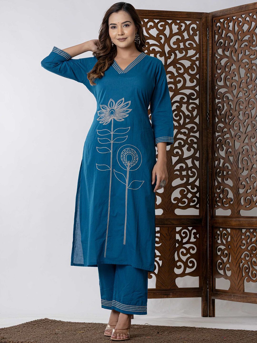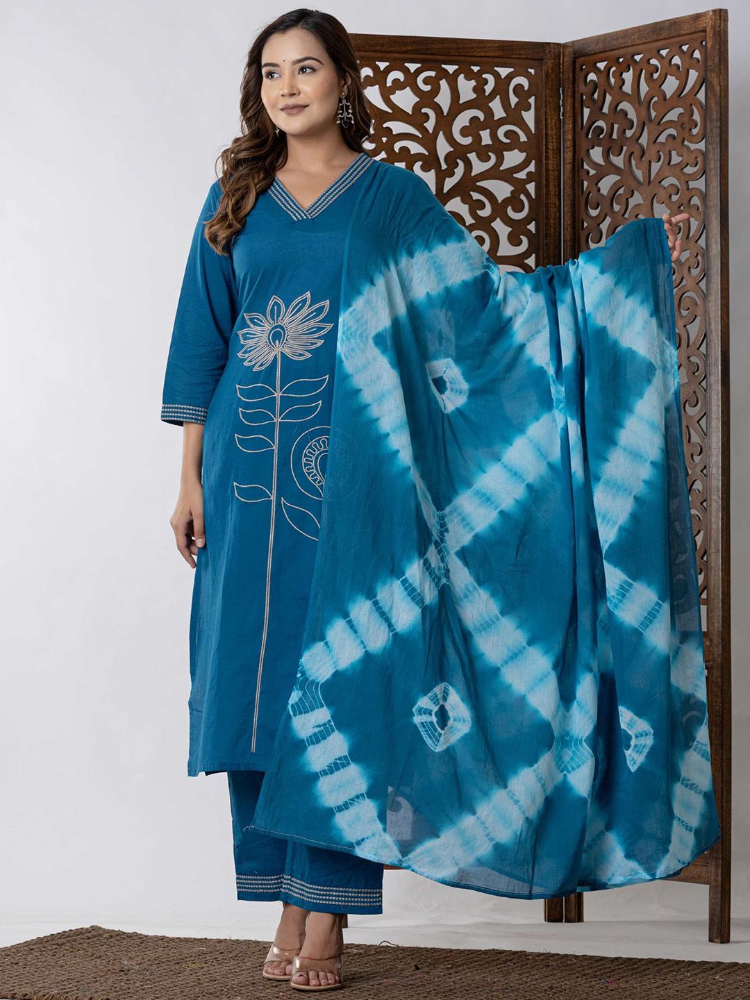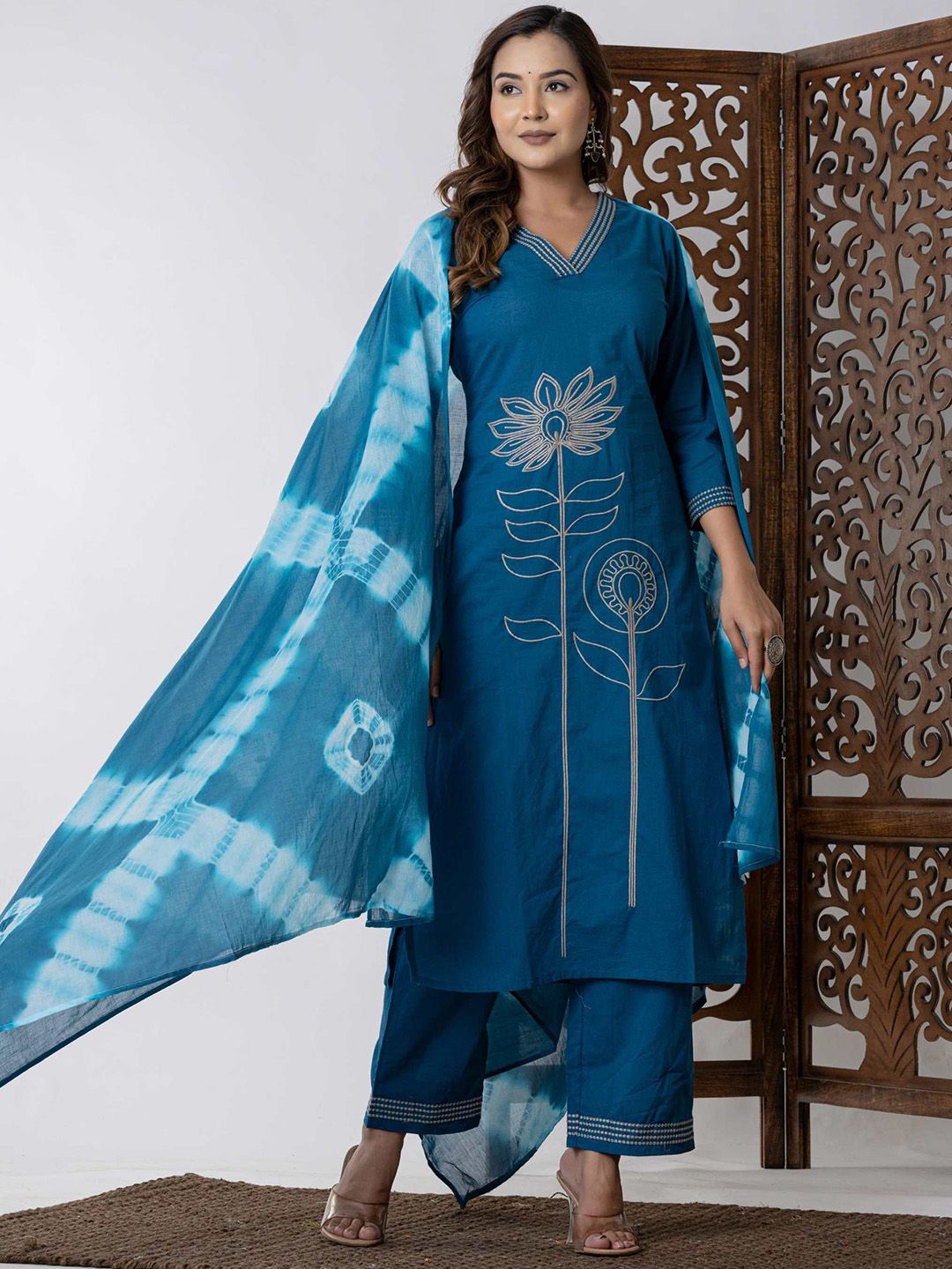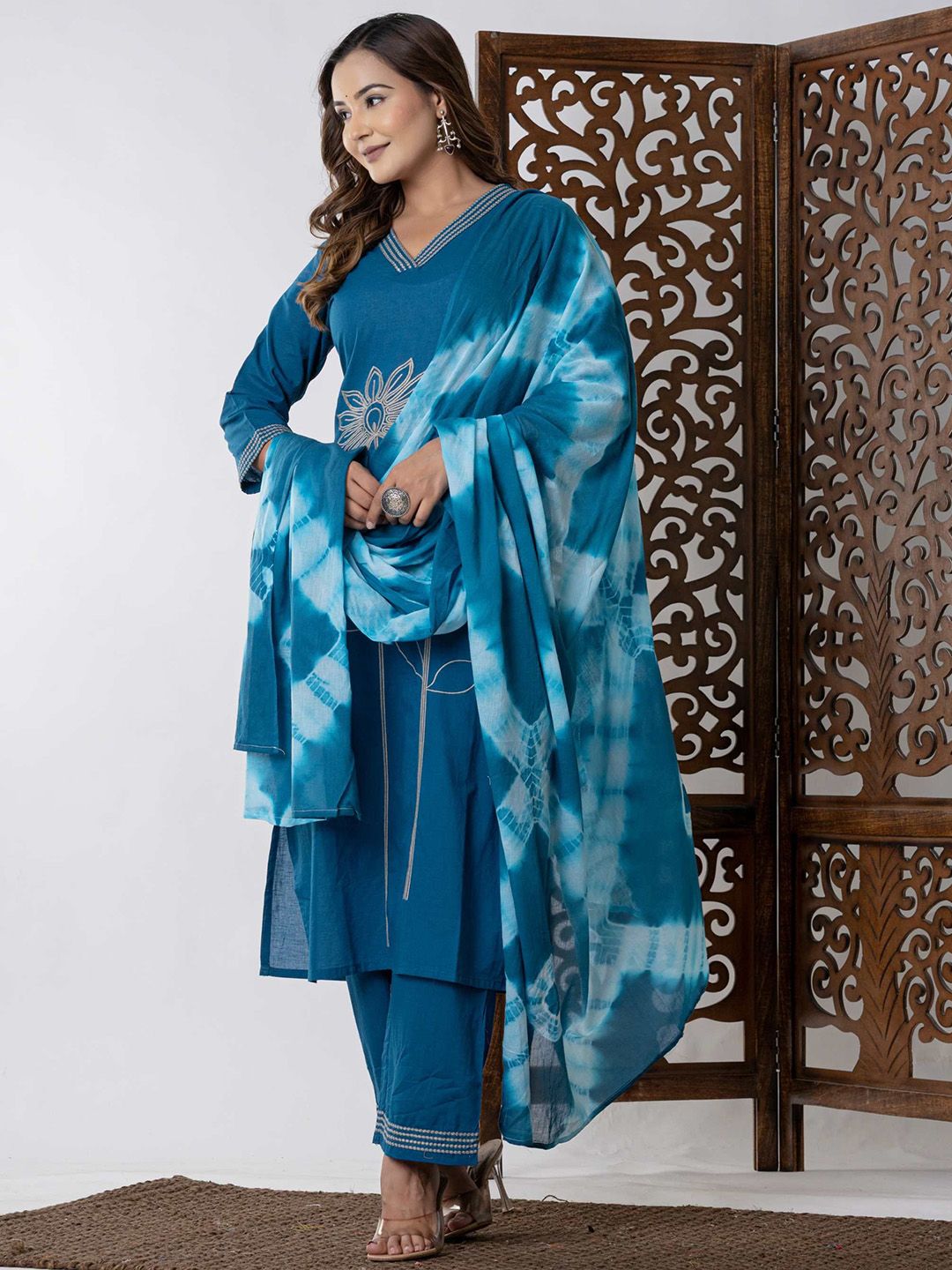 GHUMMAN SONAKSHI Women Embroidered Pure Cotton Straight Kurta And Palazzo With Dupatta