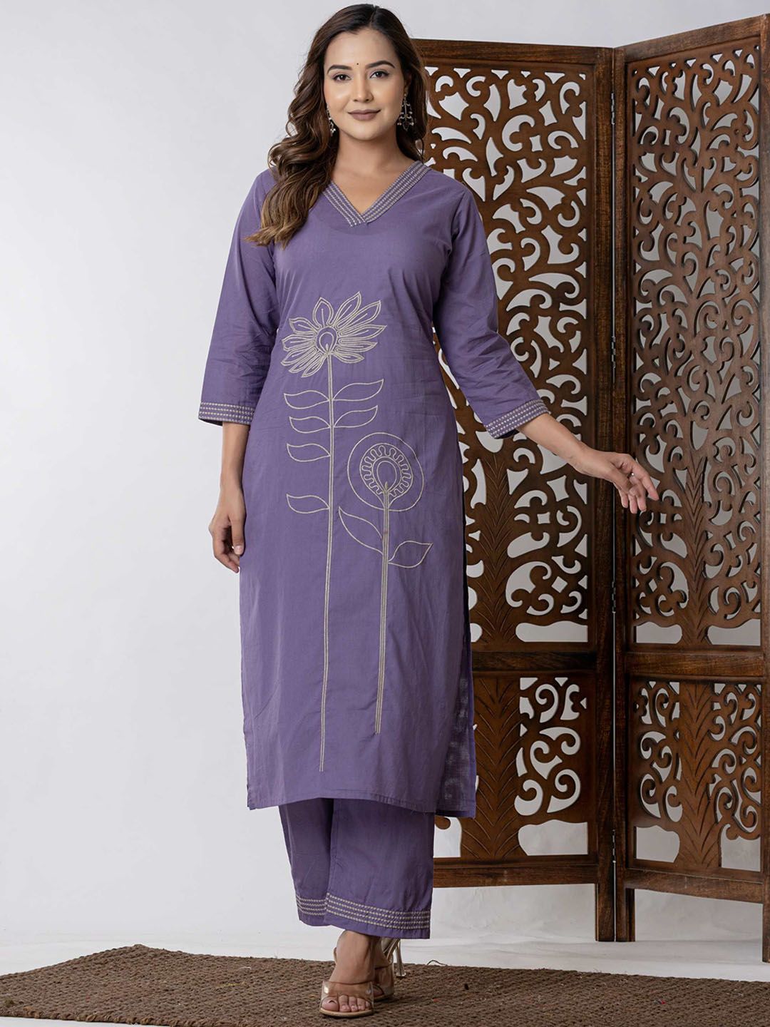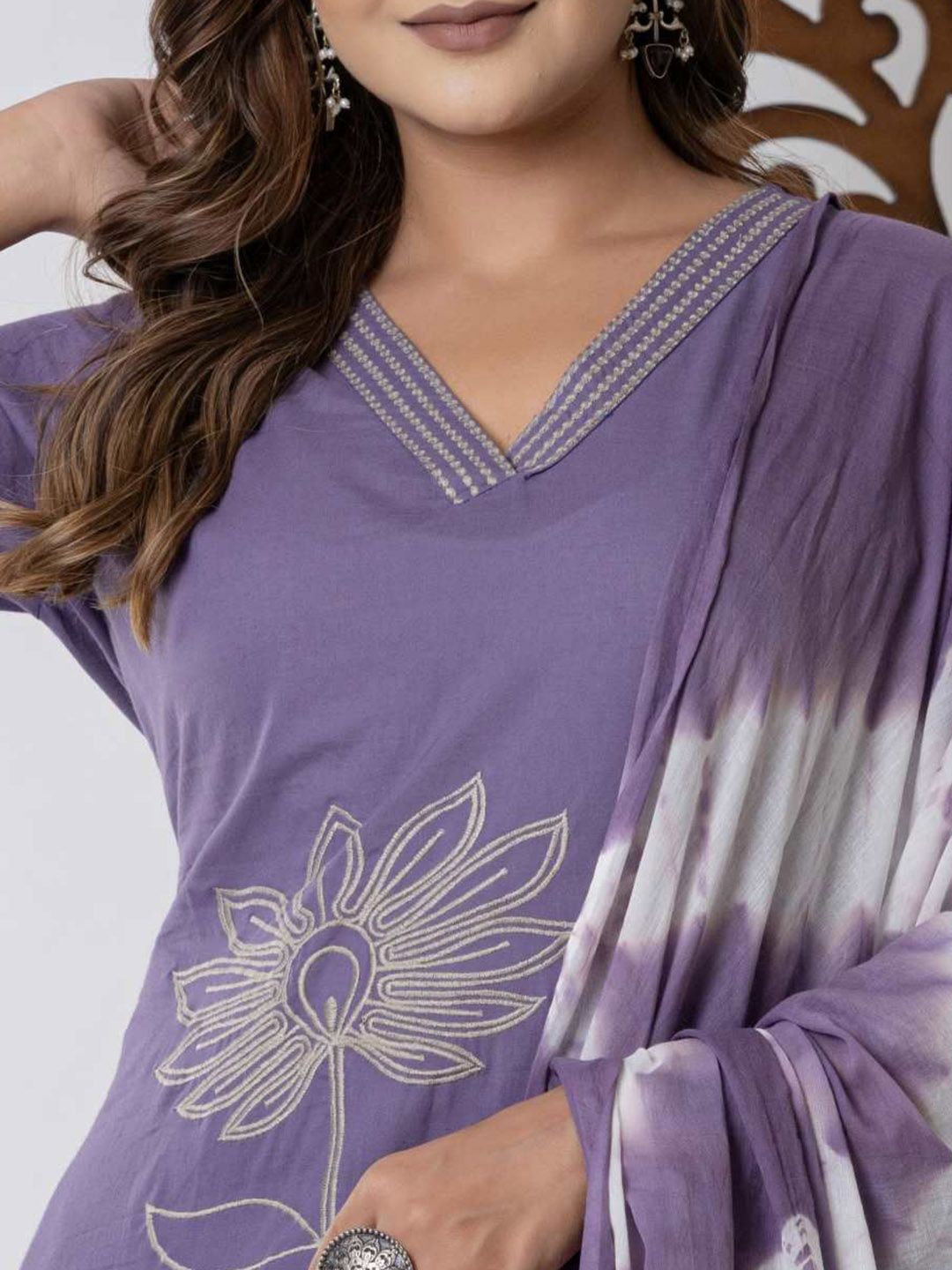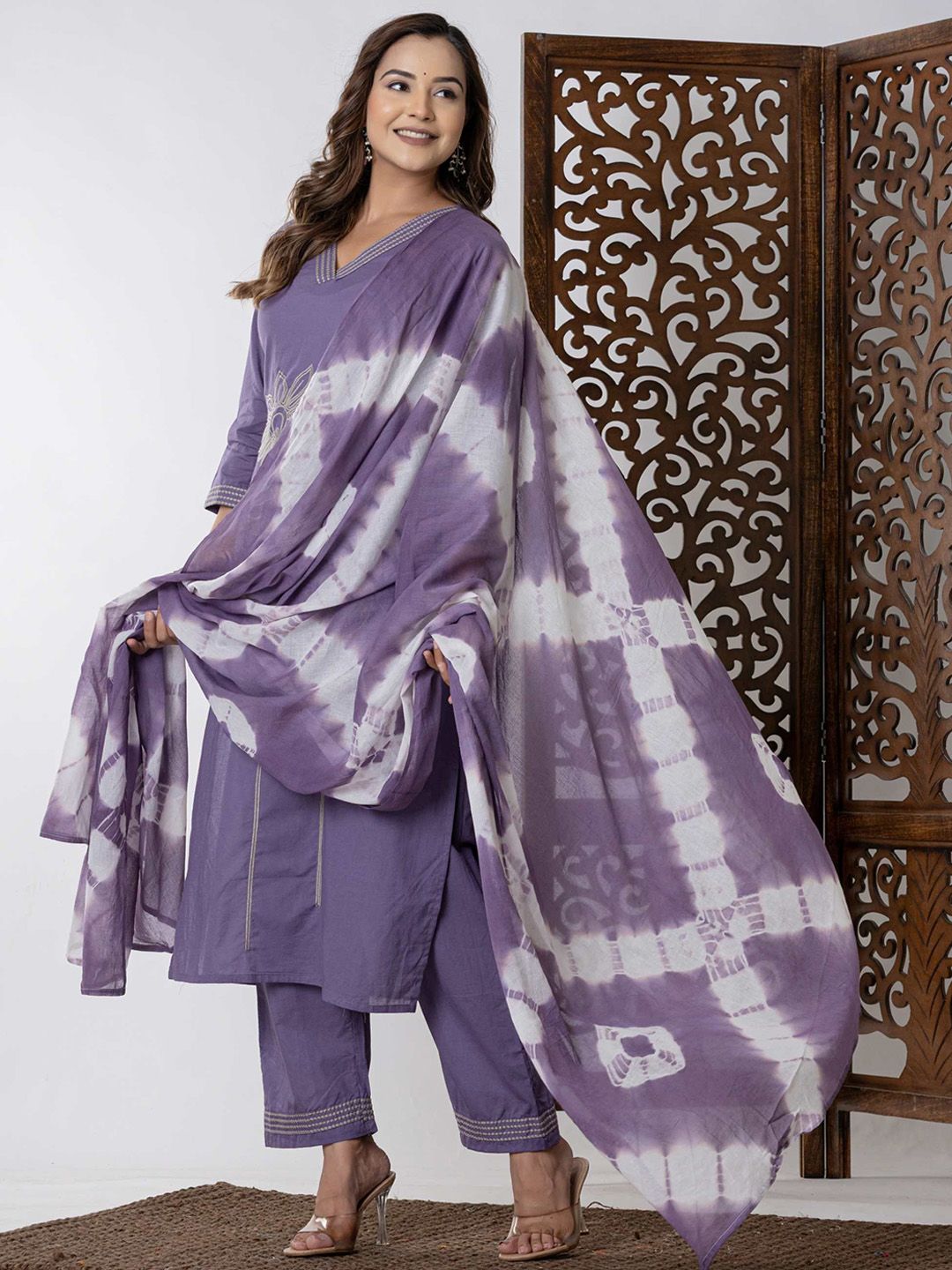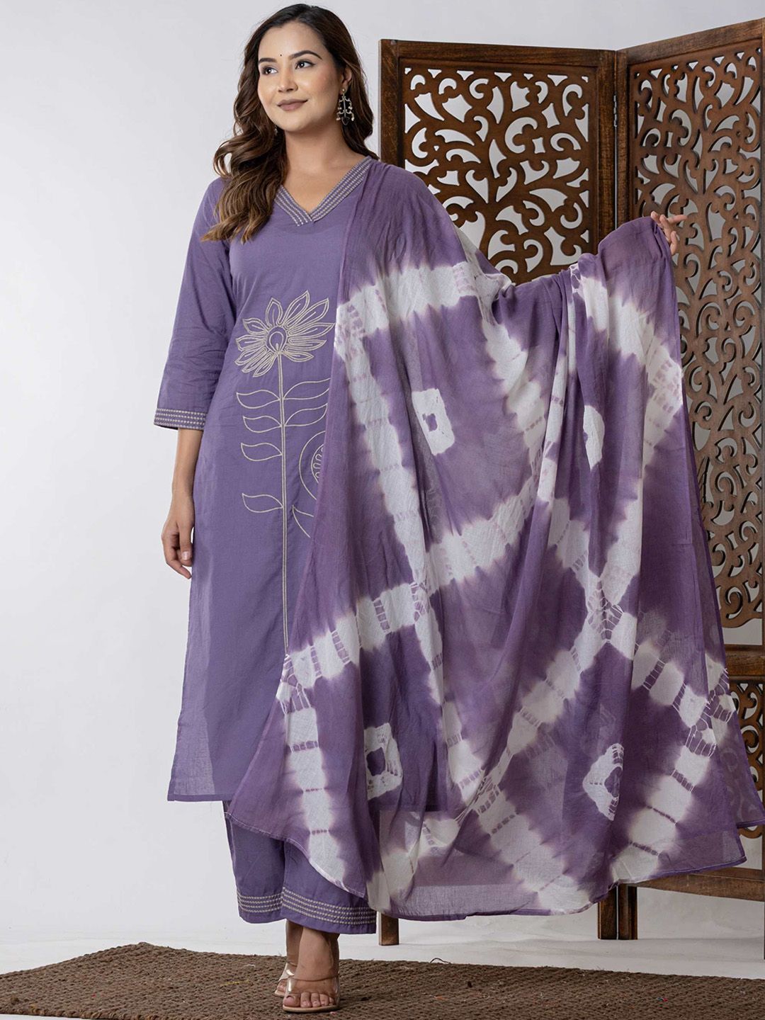 GHUMMAN SONAKSHI Women Ethnic Motifs Embroidered Pure Cotton Kurta with Trouser & Dupatta