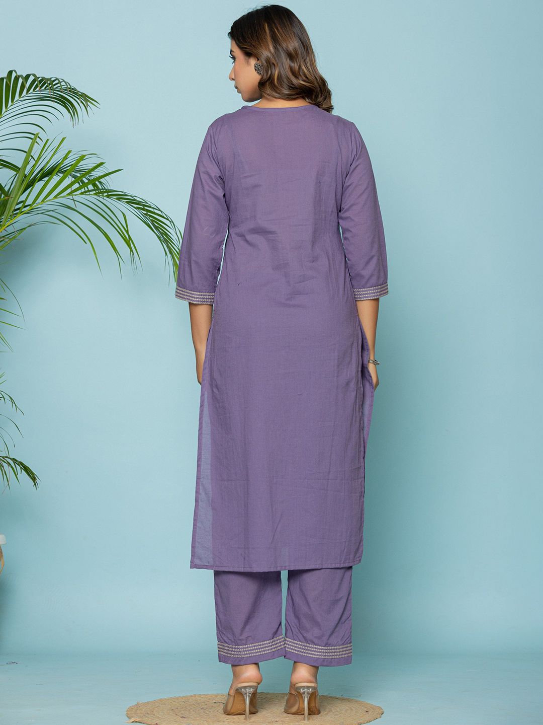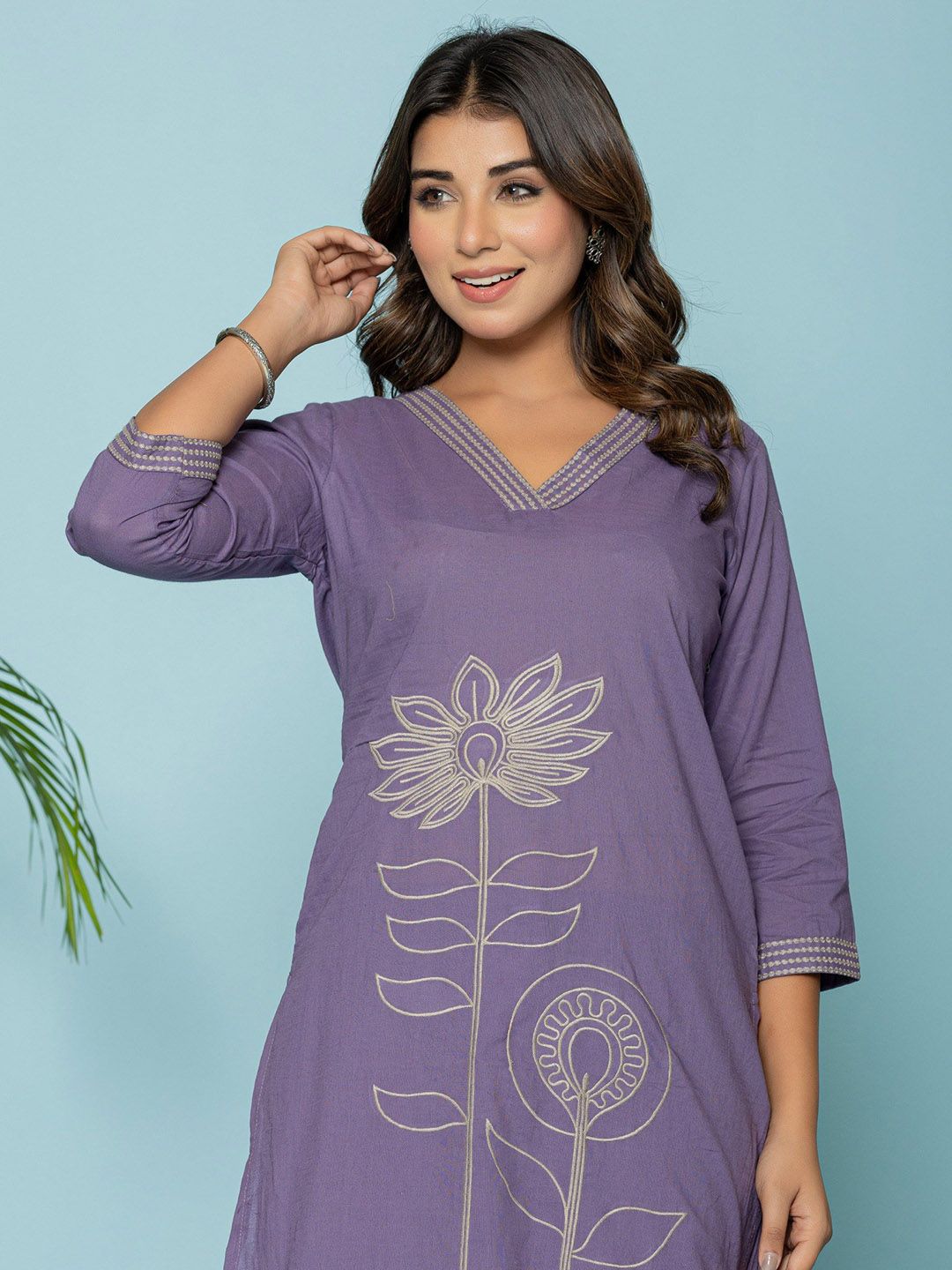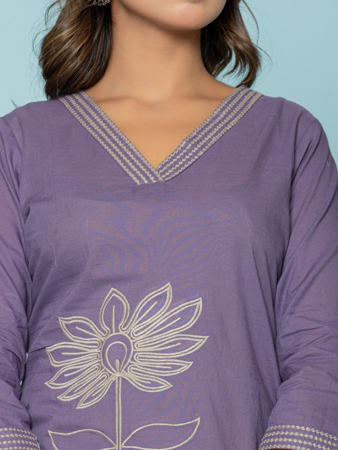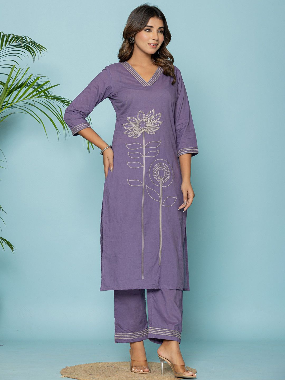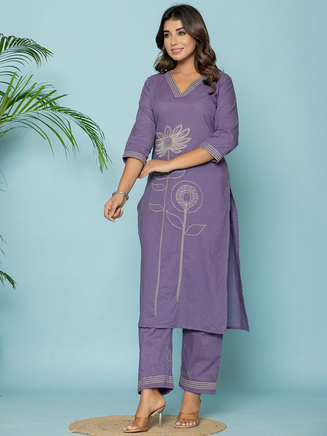 GHUMMAN SONAKSHI Women Floral Embroidered Thread Work Pure Cotton Kurta with Trousers