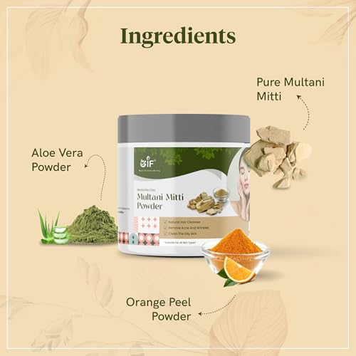 GIF Multani Mitti Powder – 100% Pure & Natural Skin and Hair Care ?? Ethically Sourced & 100% Pure: Carefully sourced from nature, GIF Multani Mitti Powder is free from contaminants, ensuring you get the purest and safest experience for your skin and hair. ? No Added Chemicals: Unlike other products, our Multani Mitti Powder is completely free from preservatives, artificial colors, and fragrances. It’s as natural as it gets! ? Tan Removal: GIF Multani Mitti is your go-to natural remedy for removing stubborn tan and dead skin, revealing a brighter and smoother complexion. ?? Deep Skin Cleansing: This mineral-rich clay gently cleanses and purifies your skin by removing excess oil, dirt, and impurities, helping reduce acne, blackheads, and pimples effectively. ?? Mineral-Enriched Skin Care: Packed with calcium and silicates, our Multani Mitti Powder helps combat dark spots, wrinkles, fine lines, and clogged pores, while enhancing skin radiance and elasticity. ????? Hair Nourishment: Not just for the face, GIF Multani Mitti is perfect for hair care too! It nourishes and hydrates your hair, minimizing split ends, frizz, and brittleness, leaving your hair soft, smooth, and healthy. Why Choose GIF? At GIF, we believe in delivering products that bring you closer to nature. Trusted by countless customers for quality and purity, our Multani Mitti Powder is your ultimate companion for glowing skin and lustrous hair. ?? Order Now to experience the unmatched benefits of 100% natural Multani Mitti!