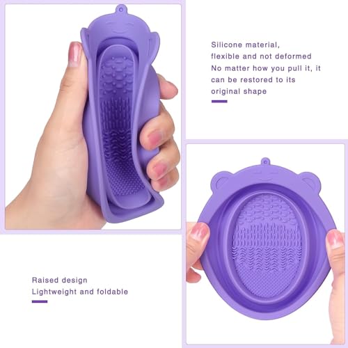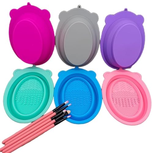 Giffy® Foldable Silicone Scrub Pad Tub BPA-Free Makeup Brushes Cleaner Quick Drying Cosmetic Eyeshadow Brush Cleaning Tray, Multicolor (M, 1)