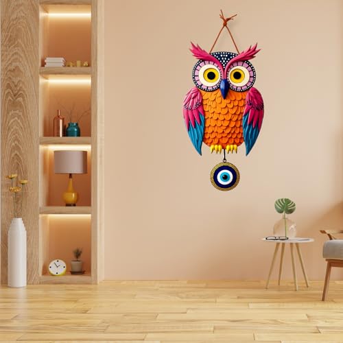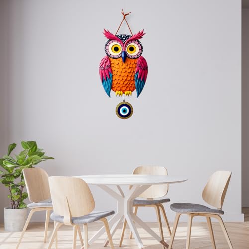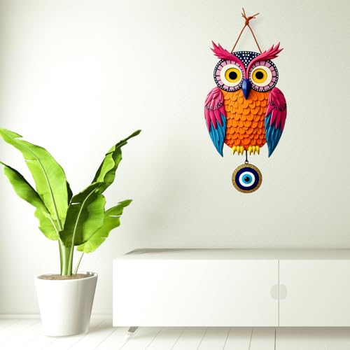 Unique Owl Shape Design: This wooden wall hanging features an intricately crafted owl shape, symbolizing wisdom and protection, perfect for adding a touch of personality to any space. Evil Eye Charm: Includes the powerful Evil Eye symbol, known for its ability to protect your home and ward off negative energy, bringing peace and positivity to your living space. Modern Artwork: Designed with a contemporary style, this piece blends beautifully with various decor themes, adding an artistic flair to any room. High-Quality MDF Material: Made from durable MDF, this wall hanging is lightweight yet sturdy, ensuring it will last while maintaining its vibrant appearance. Versatile Decor Piece: Perfect for placement in the living room, dining room, bedroom, or as a decorative door accent, adding charm and protection wherever you choose to hang it.