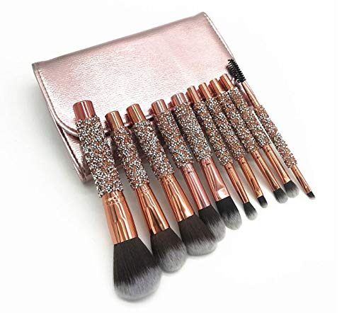 Newest luxury Makeup Brushes 10pcs Set - This makeup brush set is new released.The diamond-studded handle of it is really so unique and gorgeous. Every beauty deserves to own this makeup brush set! Ultra-soft Bristles - The brown-gray synthetic fiber bristles are super soft and odour free which is safe for sensitive skin use. 100% non-shedding and not fade, very easy to blend cosmetics seamlessly into your skin. Unique Luxury Handle - The most attractive highlight of these makeup brushes is its shiny handle. It is made of durable plastic with mini diamonds studded, looks super luxury and elegant. Multipurpose - This 10pcs shiny makeup brushes set contains powder brush, blush brush, eyeshadow brush, eyebrow brush, etc. Can be applied to wet and dry cosmetics to meet variety makeup needs. Perfect Gift Choice - This makeup brush set also have a cosmetic bag which is used to storage. It will be a perfect gift choice for your friends, mother, grandmother, daughters, lover.