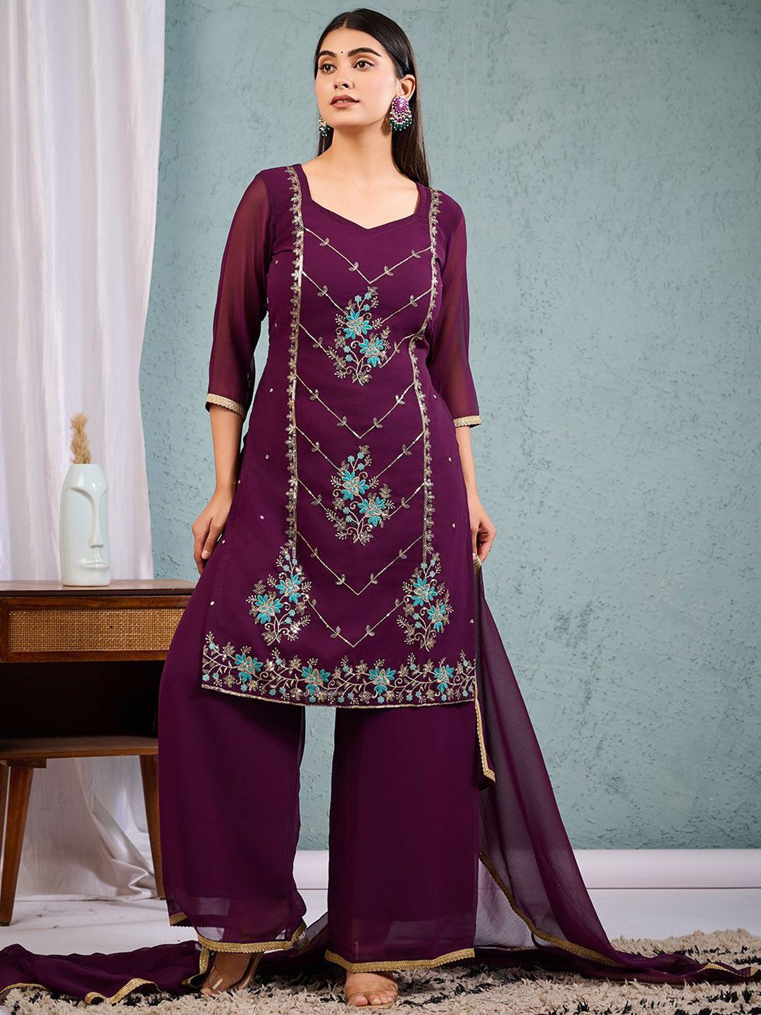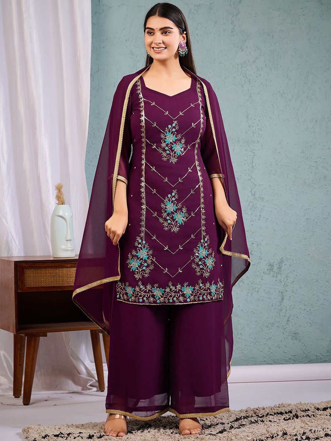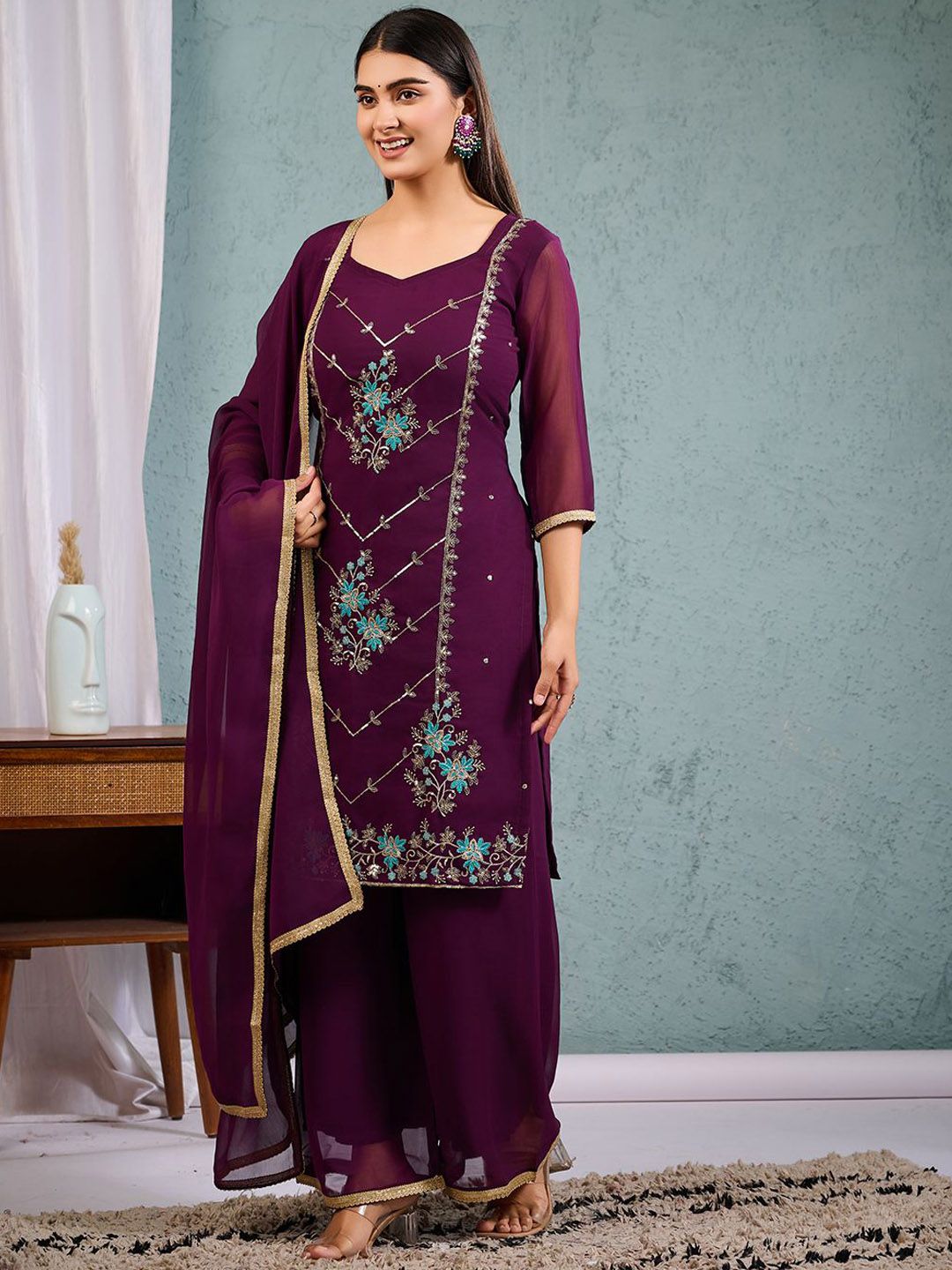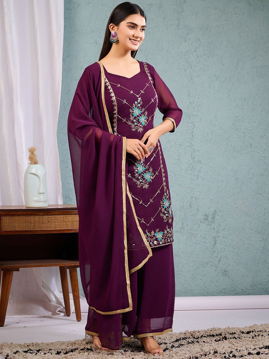Globon Impex Women Embroidered Regular Sequinned Kurta Set With Dupatta
