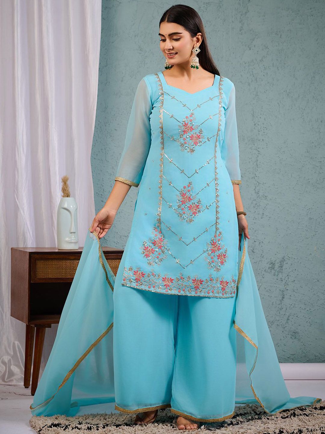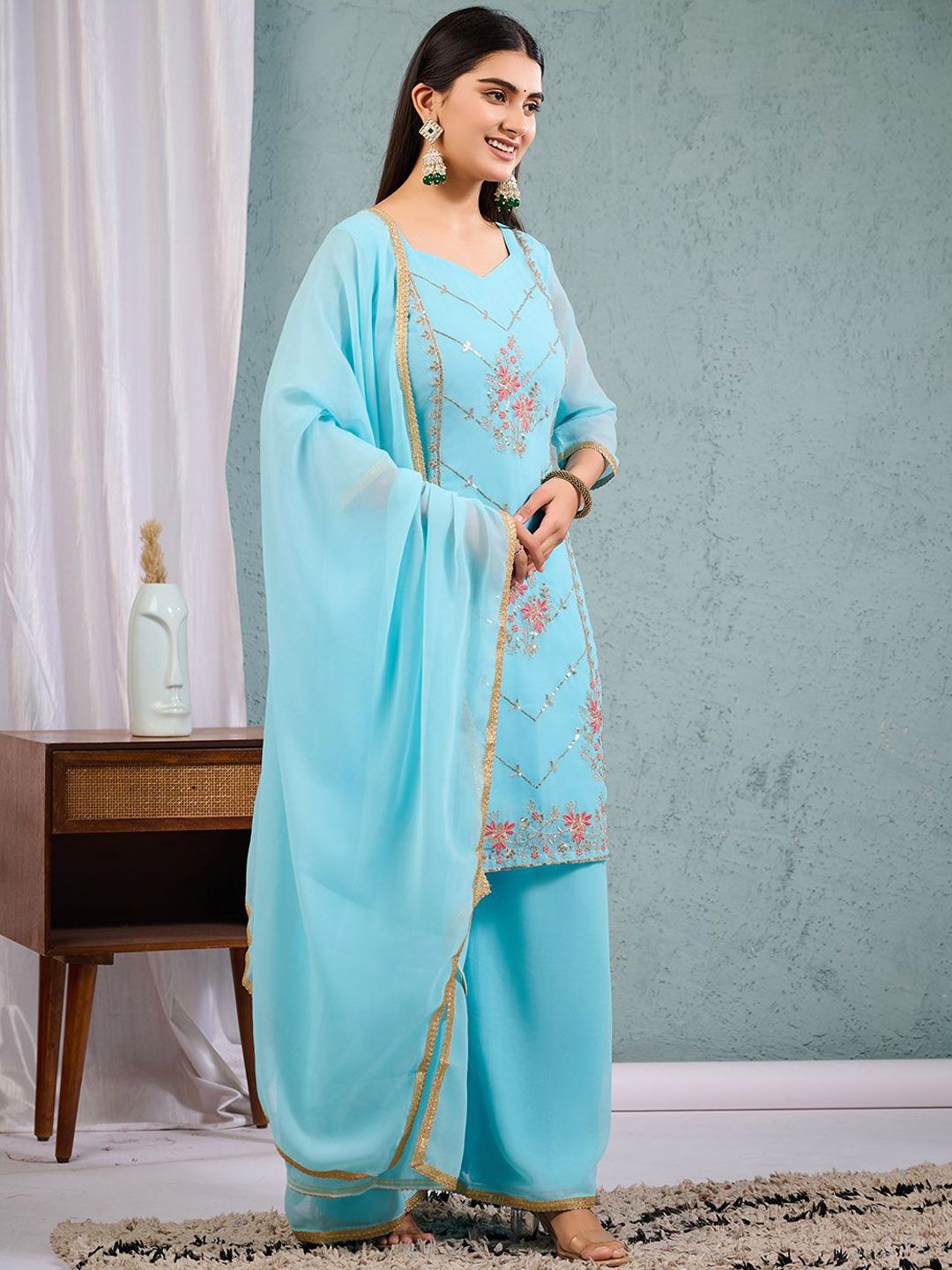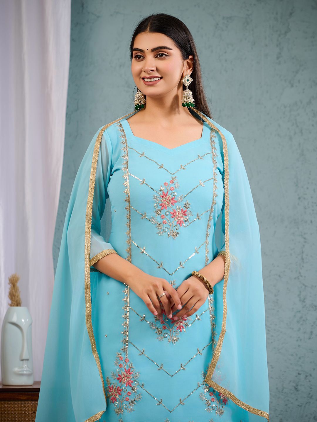 Globon Impex Women Ethnic Motifs Embroidered Kurta with Palazzos & Dupatta
