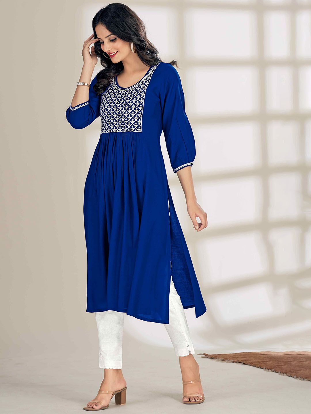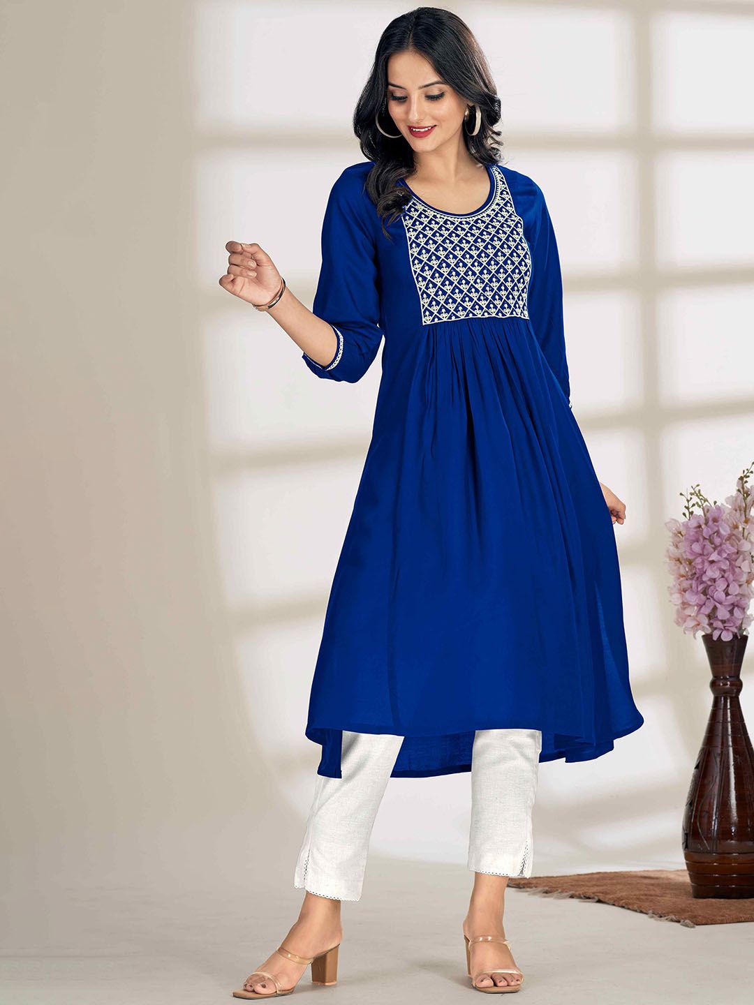 Buy this stylish Glomee Women Floral Yoke Design Regular Sequinned Pure Cotton Kurta with Trousers at Marincart Nepal. This product offers great quality and value. Perfect for those looking for the latest trends in fashion. Get yours now at unbeatable prices.