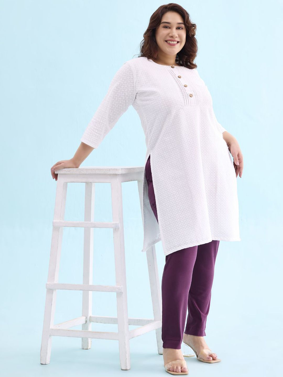 Go Colors Women Straight Pure Cotton Kurti With Trousers