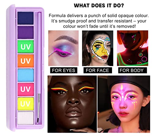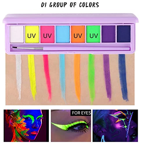 Go Ho 8 Colors Water Activated Eyeliner Palette,Highly Pigmented Bright Vibrant Fluorescent Rainbow Colorful Face and Body Paint Makeup,Matte and UV Glow Graphic Eyeliner,With Eyeliner Brush-01
