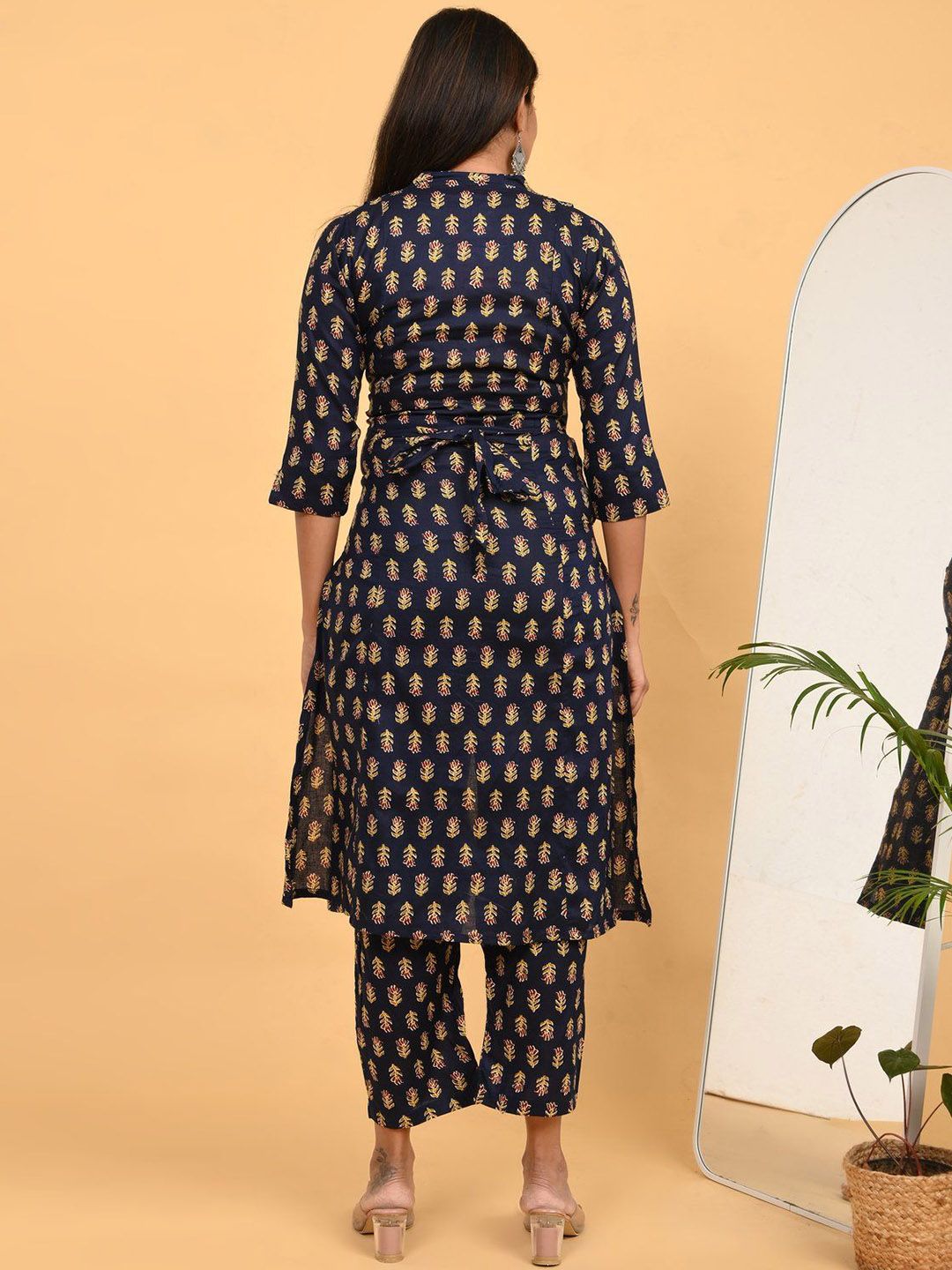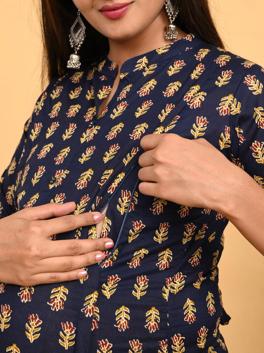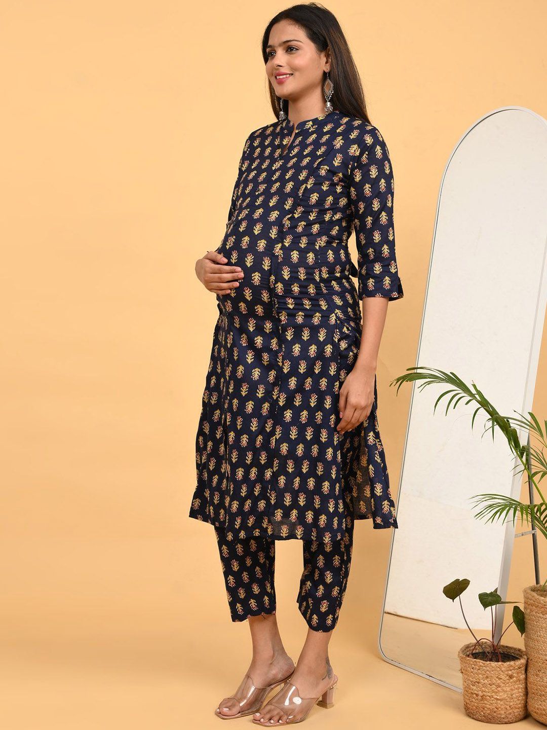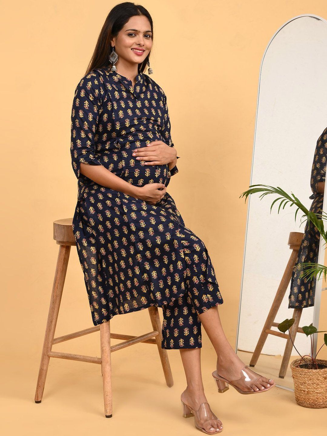 GOLDSTROMS Floral Printed Straight Pure Cotton Maternity Kurta With Trousers