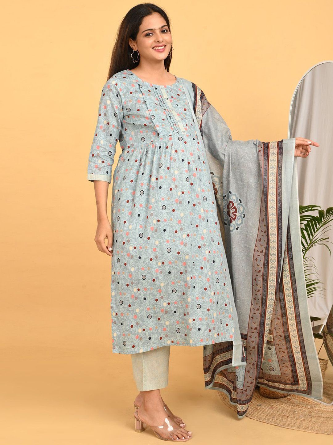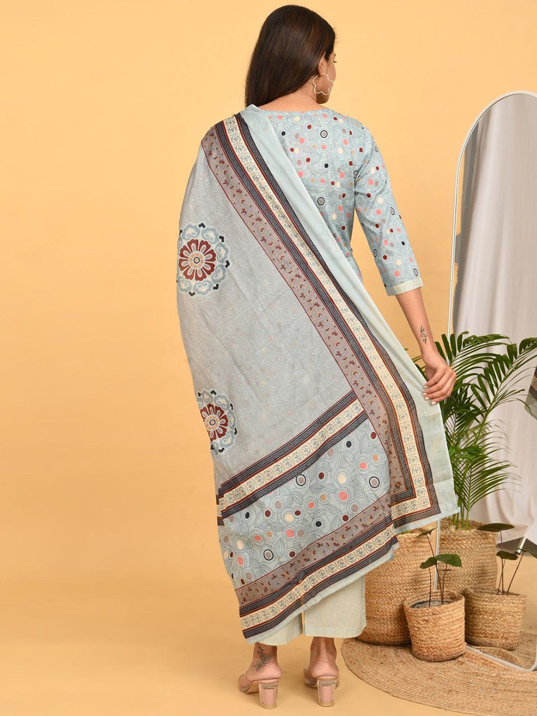 GOLDSTROMS Women Geometric Printed Pure Cotton A-Line Kurta with Trouser & Dupatta