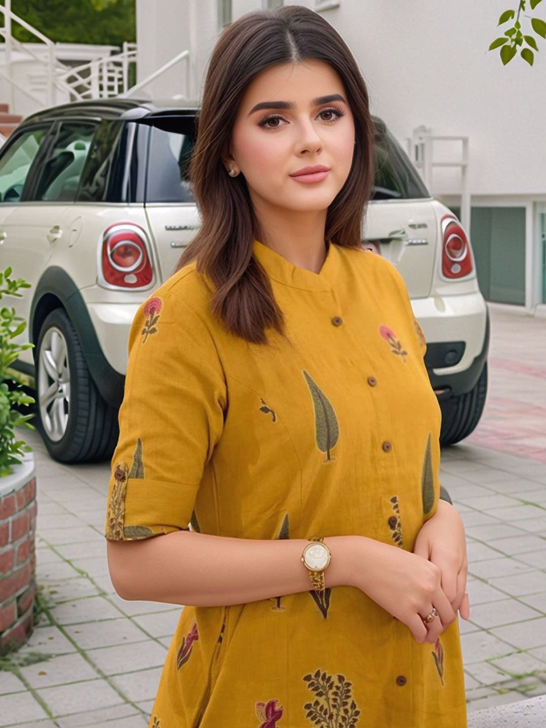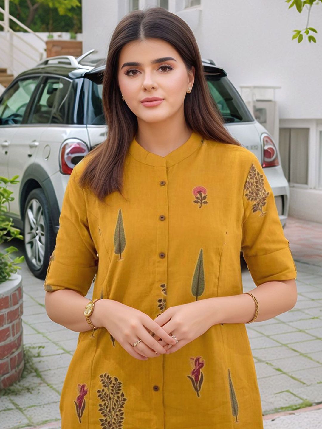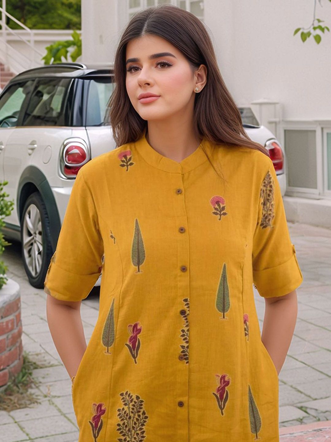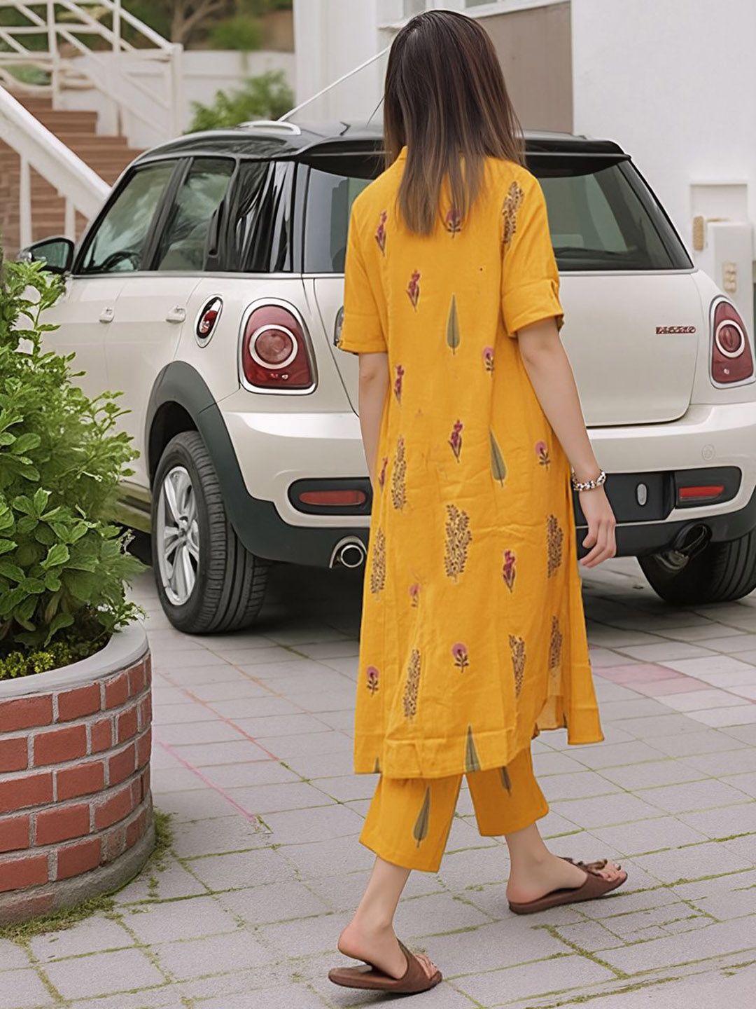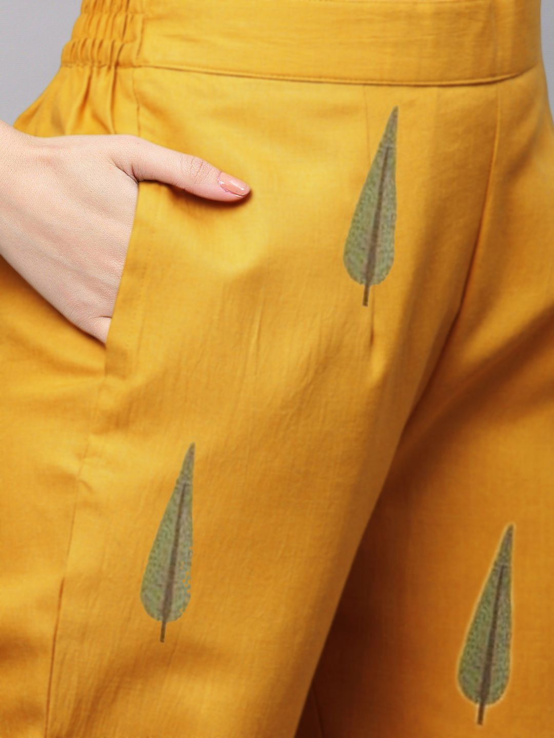 GoSriKi Ethnic Motifs Printed Mandarin Collar Kurta With Trousers