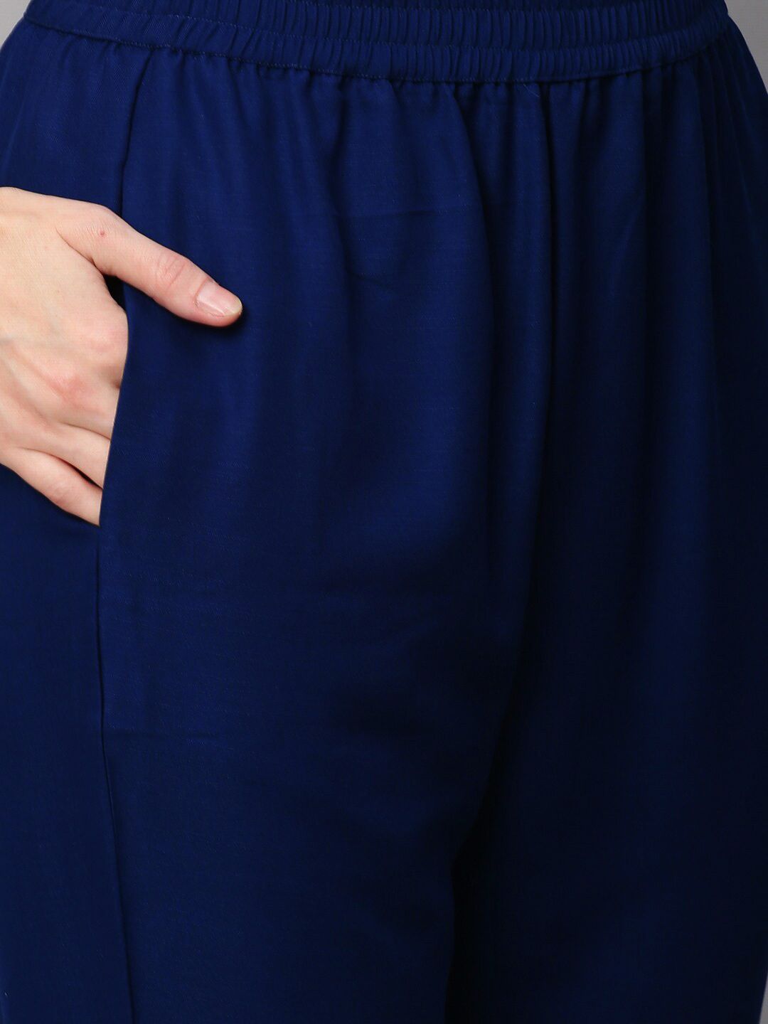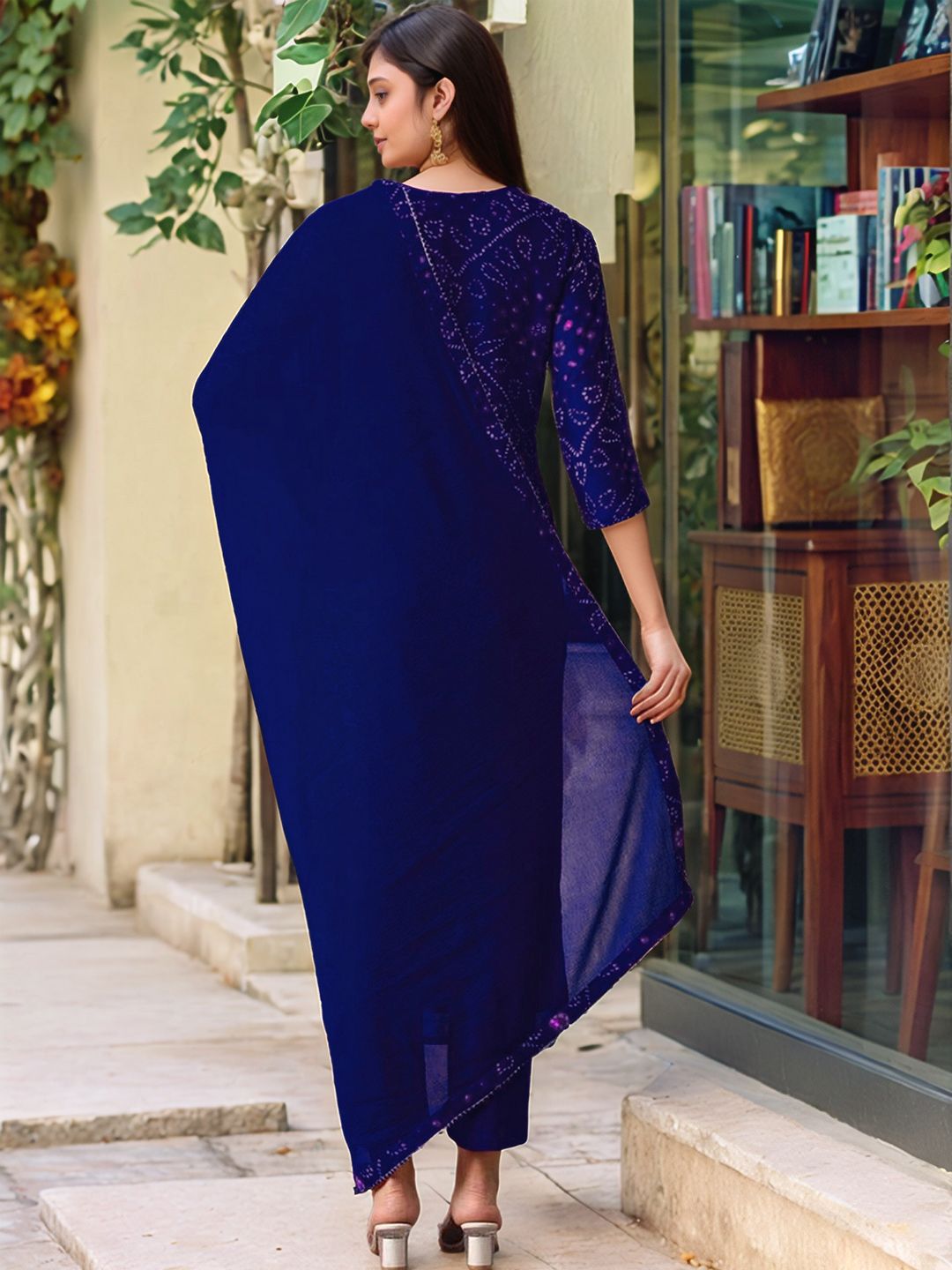 GoSriKi Ethnic Motifs Printed Mirror Work Straight Kurta with Trousers & Dupatta