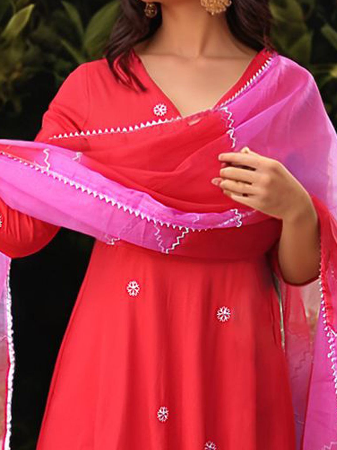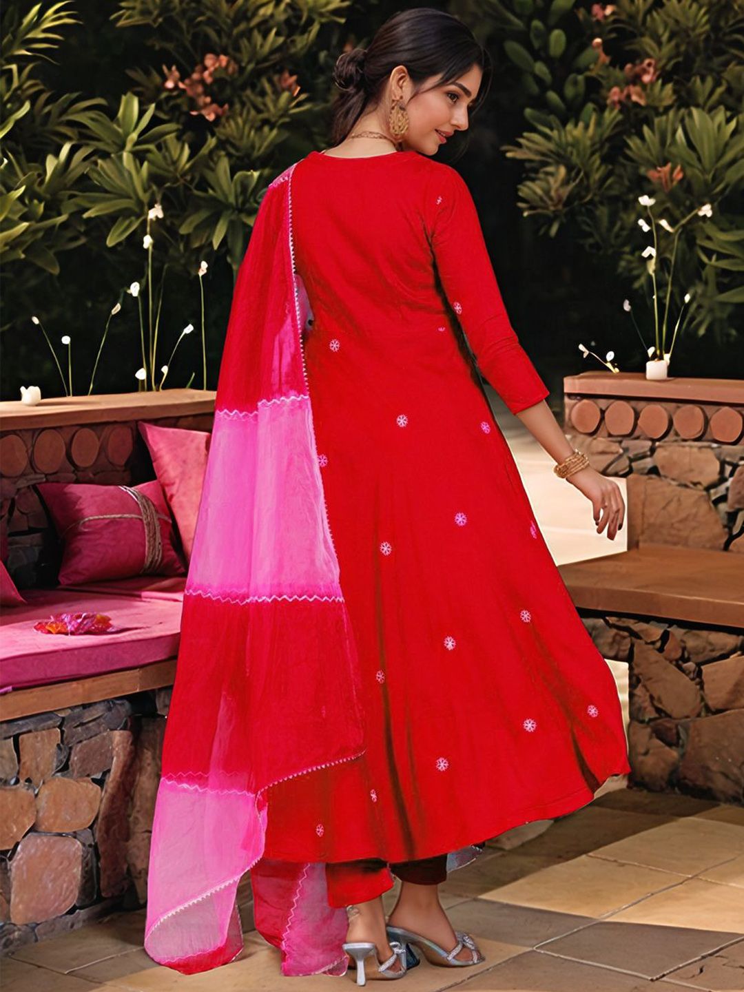 GoSriKi Floral Embroidered V-Neck Anarkali Kurta With Trouser & Dupatta
