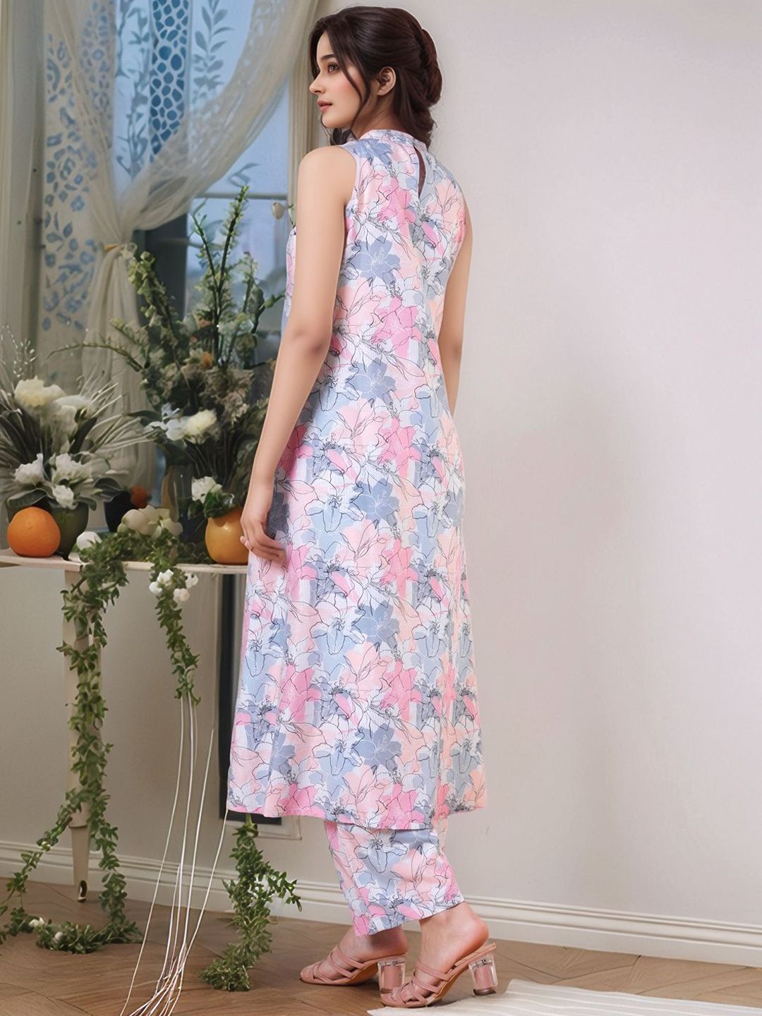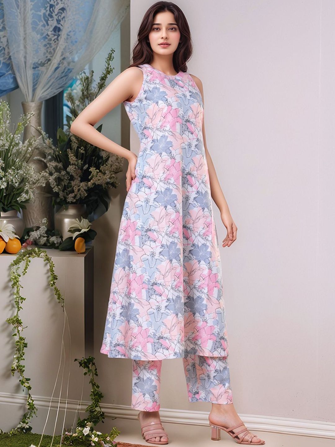 GoSriKi Floral Printed Round Neck A-line Kurta & Palazzos